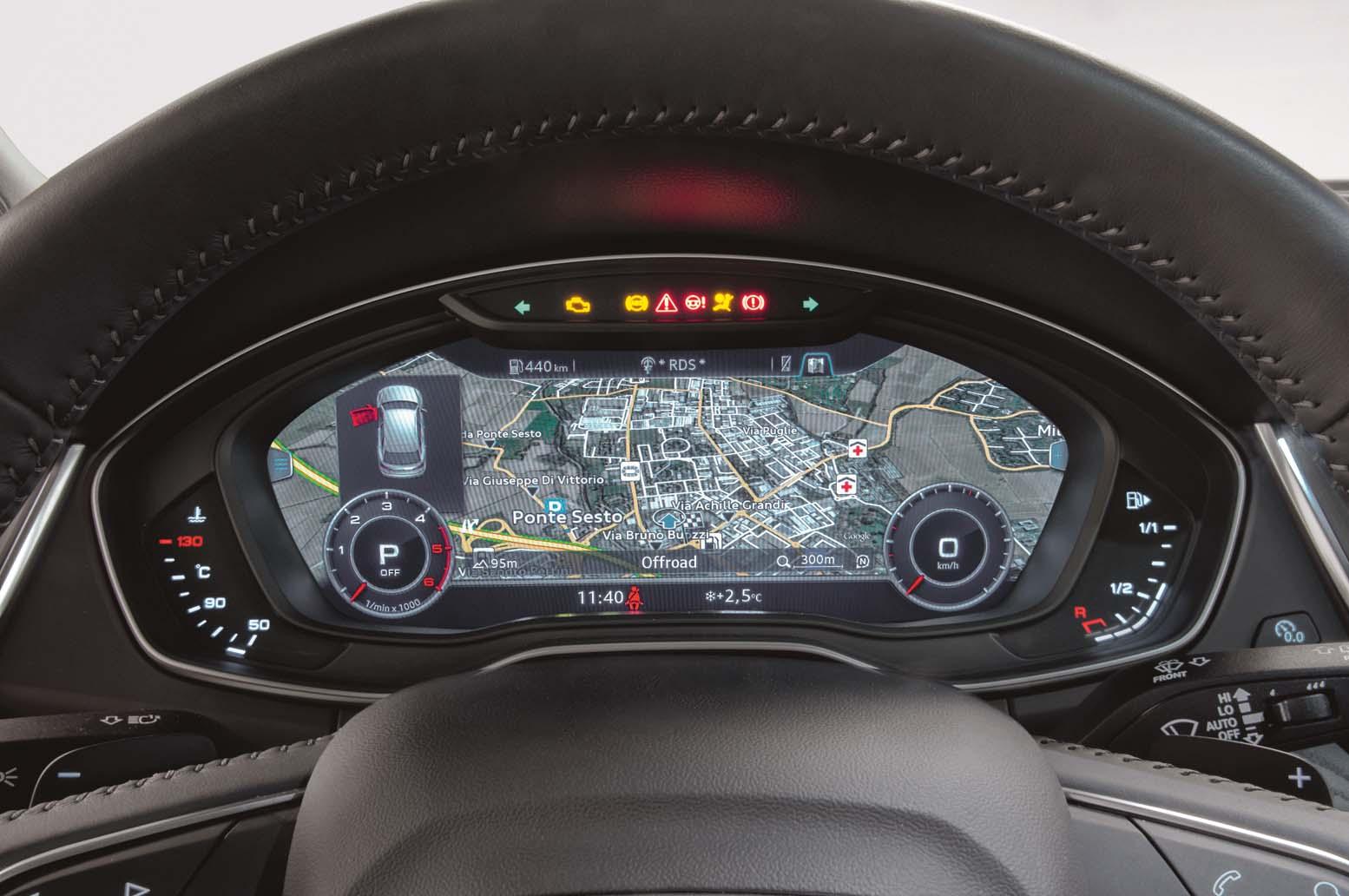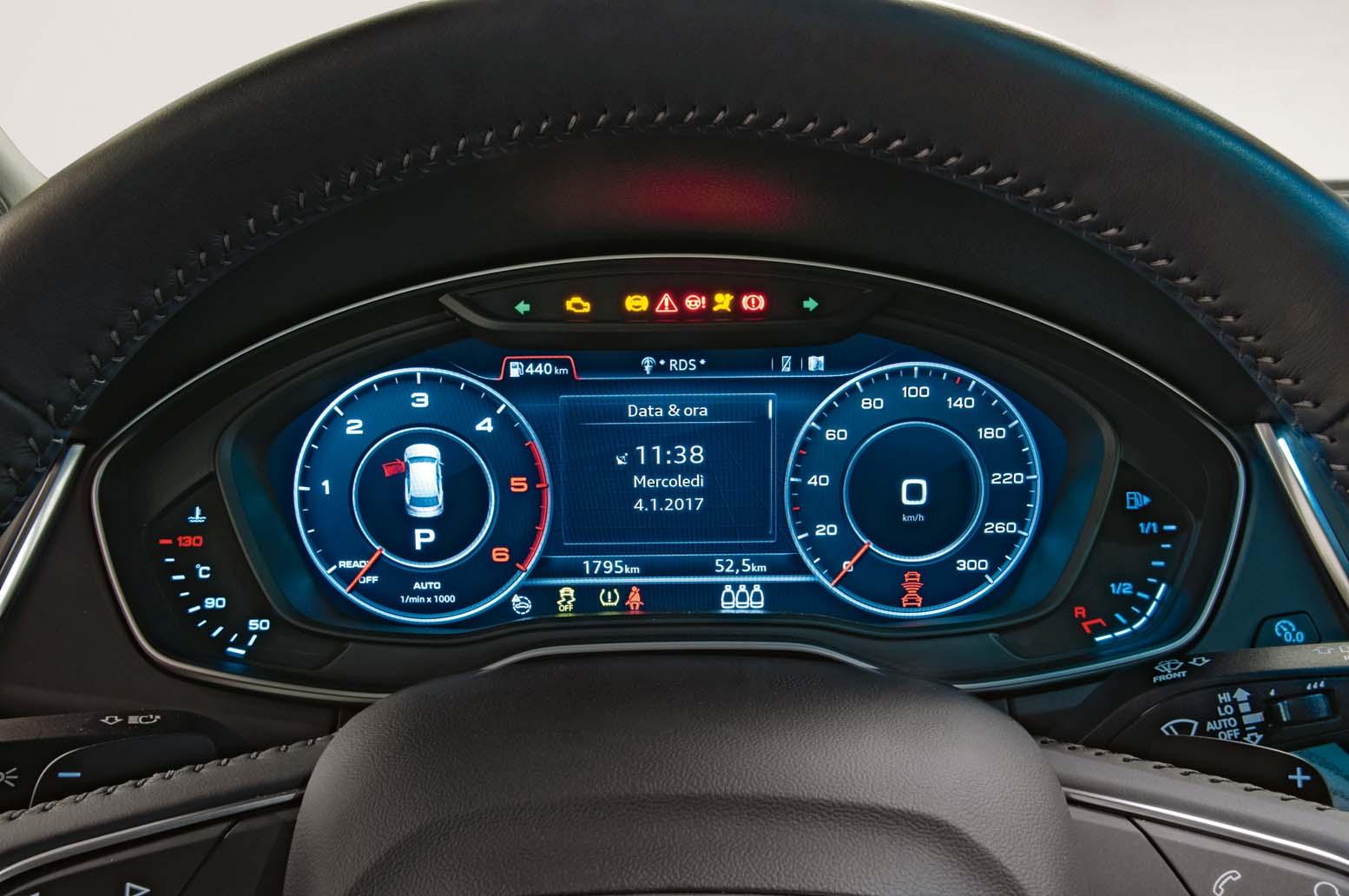 Что касается стиля, передняя панель напоминает одновременно аналогичный элемент и в A4, и в Q7. То же самое относится и к отделке. Уровень привычный, хотя и удивляет, что к некоторым деталям не отнеслись с привычной дотошностью. Ничего такого, что могло бы поставить под удар традиции и оценки, однако нижняя часть консоли сделана из пластика, лишенного той мягкости, которую ожидаешь ощутить в Audi. В остальном салон показывает формальное совершенство, а также конкретную практичность, созданную на основе простора и определенной ловкости его использования: простой доступ в салон, четыре удобных места и еще одно, пятое, по необходимости.