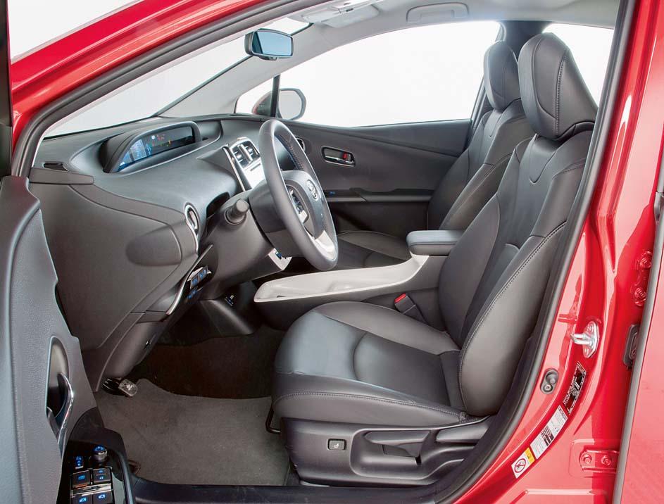 В салоне бросается в глаза обилие разномастных пластиков на тоннеле: это прихотливая деталь, хотя не совсем новая, поскольку заставляет вспомнить схожий интерьер Chevrolet Volt, искавшего новые пути реализации идеи доступных гибридов. В остальном же Prius напоминает больше всего сам себя. По сравнению с прошлым сидишь на шесть сантиметров ближе к земле. Хотя это очень большая разница, ее недостаточно, чтобы кардинально изменить характер автомобиля. Это же касается и остального интерьера, включая переднюю панель, которая в очередной раз скроена по привычным для Prius лекалам научной фантастики.