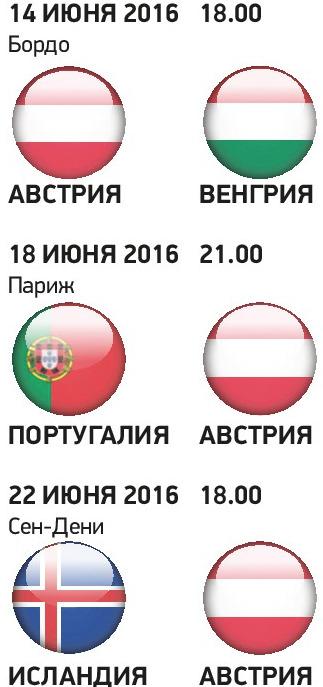 Сборная Австрии сейчас имеет самую сильную команду за последние 15 лет. Хотя она и принимала участие в Евро-2008, но тогда автоматически попала на турнир на правах хозяйки и оказалась в нем в роли аутсайдера. Нынешняя сборная Австрии – команда укомплектованная квалифицированными и амбициозными игроками. Они уверенно провели отборочный турнир чемпионата Европы, обыграв всех соперников и допустив лишь одну ничью. Что из себя представляют австрийцы, сполна смогла оценить сборная России, дважды уступившая им со счетом 0:1. В Вене Акинфееву забил нападающий нигерийско-пакистанского происхождения Рубин Окоти («Мюнхен 1860»), а в Москве – самый результативный бомбардир сборной Австрии Марк Янко («Базель»). А вот наши футболисты не смогли отправить в ворота австрийцев ни одного мяча, и это при том, что у соперника отсутствовал лидер команды Давид Алаба («Бавария»). Главный тренер сборной сменил ему амплуа и перевел в центр поля, где Алаба раскрылся с новой стороны, выполняя роль опорного полузащитника, а кроме того, был назначен штатным пенальтистом.