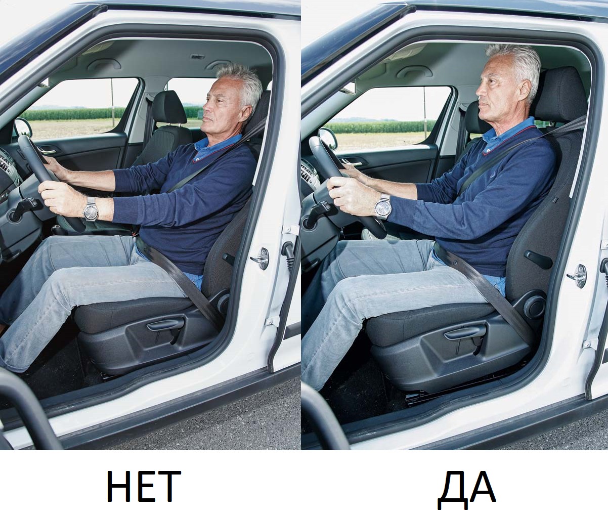 Этот закон работает в любой ситуации. Но особенно эффективно после съезда с асфальта: чтобы держать все под контролем, лучше усесться повыше. Даже в кроссовере. Поэтому забудьте о гоночной посадке (полулежа, руки вытянуты) и оптимальным образом используйте все настройки кресла. Верхнее положение подушки (естественно, не надо поднимать ее так, чтобы колени упирались в панель), прямая спина, полусогнутые локти, руки на руле на 9 и 15 часов. Ну максимум — на 10 часов 10 минут...
