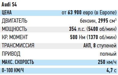 На подиуме автосалона во Франкфурте эта версия не производила сильного впечатления. Стайлинг хотя и заметен, но скромен. До такой степени, что многие задавались вопросом – не простовато ли получилось для спорткара? Мы с таким мнением несогласны: большинство потенциальных покупателей S4 ценят именно этот образ «волка в овечьей шкуре» – в зависимости от настроения, водитель может ехать в полном комфорте, а потом вдруг дать волю своим драйверским амбициям. Затем, когда раж пройдет, снова спокойно катить. Главная прелесть S4 – новый полностью алюминиевый V6, выдающий пиковые 354 л.с. Прибавьте к нему великолепное шасси и фирменный полный привод quattro и получите впечатляюще благородное поведение на дороге.