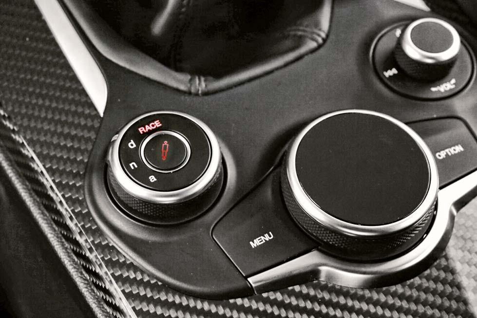 Запускаем двигатель красной кнопкой, и вперед – на штурм прямиков и поребриков. К сожалению, трек испытательного центра Балокко обильно полит дождем, но даже в таких условиях удивляет послушность передней оси. Качество не уникальное для версии Quadrifoglio, но это подтверждение: настоящая Alfa вернулась!