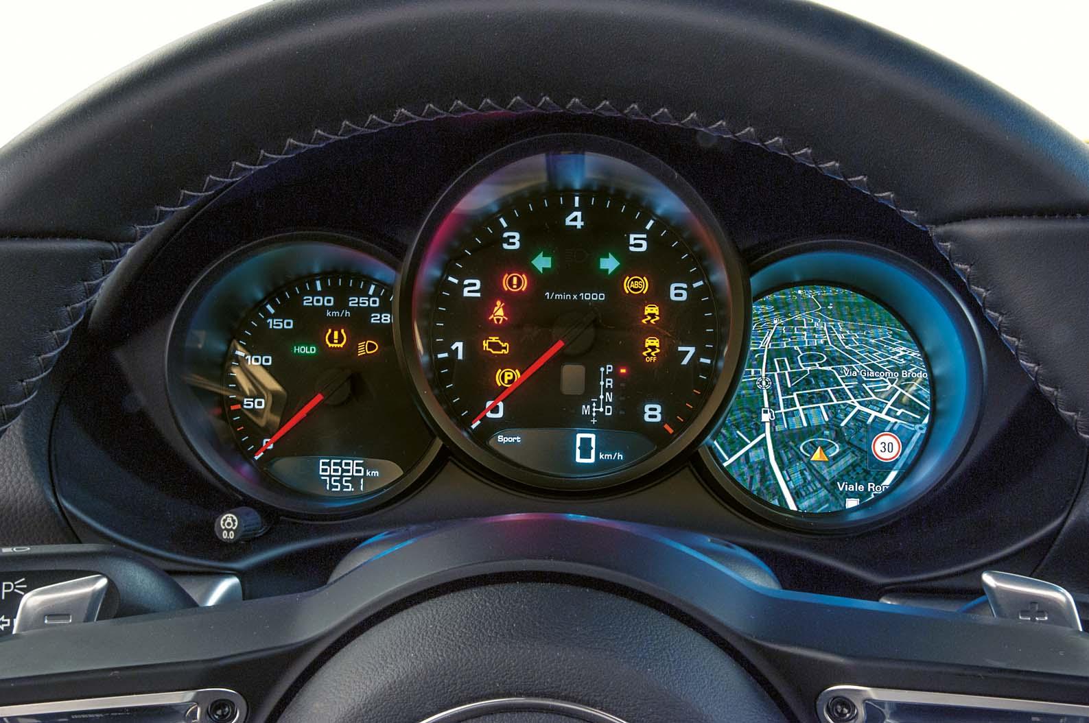 С новой мультимедийной системой PCM (Porsche Communication Management) все легко и просто. Управляется она с семидюймового тачскрина. В штатную комплектацию входят аудиосистема мощностью 110 Вт и громкая связи для телефона. За навигационный модуль с двухмерными и трехмерными картами придется дополнительно заплатить 97 941 руб. Но на что действительно стоит потратиться, так это на модуль Connect Plus (67 805 руб.), позволяющий использовать карты Google и изображения Google Street View – будешь ехать по маршруту, обозревая окрестности на 360°. Кроме того, в него загружена программа Apple CarPlay с системой распознавания голоса Siri. Что касается аудио, в качестве опции предлагают систему Bose (550 Вт, 74 584 руб.) или Burmester с 12 динамиками суммарной мощностью 821 Вт плюс трехсотваттный сабвуфер (247 864 руб.). Не советуем брать ни ту, ни другую – все равно им не перекричать оппозитник.