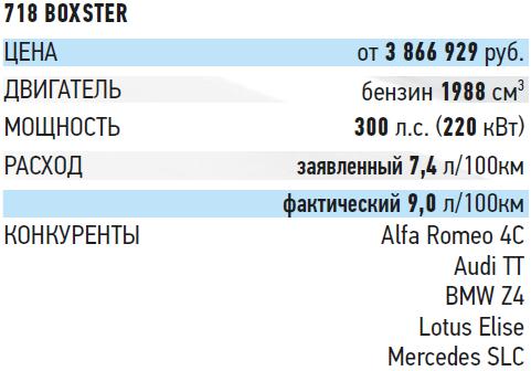 Ходовая работает безупречно. На больших 20-дюймовых колесах (опция) Boxster четко держит заданную пилотом траекторию. Передняя ось поражает послушностью, рулевое управление, обретя дополнительную точность, дает корректировать траекторию буквально по миллиметрам, и при этом пилот в любой момент точно знает, что происходит под колесами. Правда, хотелось бы еще большей остроты, но и без нее все очень хорошо. Узкие повороты Boxster проходит юрко, вселяя чувство безопасности, задние колеса срываться в букс не хотят ни в какую, если, конечно, пилот их откровенно не провоцирует. Ну и тормоза. Посмотрите результаты тестов – это просто фантастика.