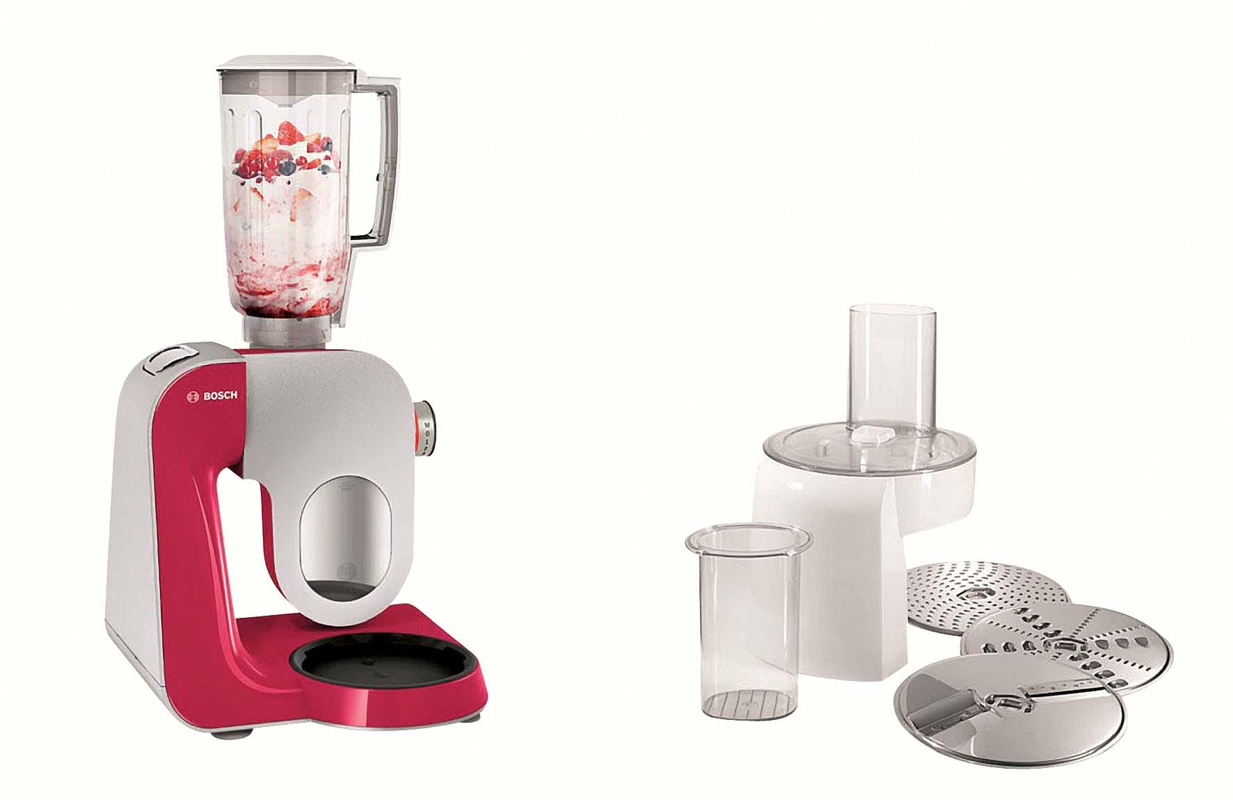 Серия кухонных машин Bosch MUM5 дает практически неограниченные возможности для кулинарного творчества. Благодаря мощному мотору и планетарному вращение крюков и венчиков, вам по плечу самые разнообразные текстуры – будь то нежнейшие яичные белки или крутое тесто для пасты. Почти у всех моделей линейки есть сенсоры, измеряющий плотность продукта и поддерживающий постоянную скорость вращения насадок. Для агрегатов предлагают огромный набор функций, насадок и дополнительных аксессуаров. В базовом наборе крюк для теста, венчик для жидкого теста и круглый венчик для крема.