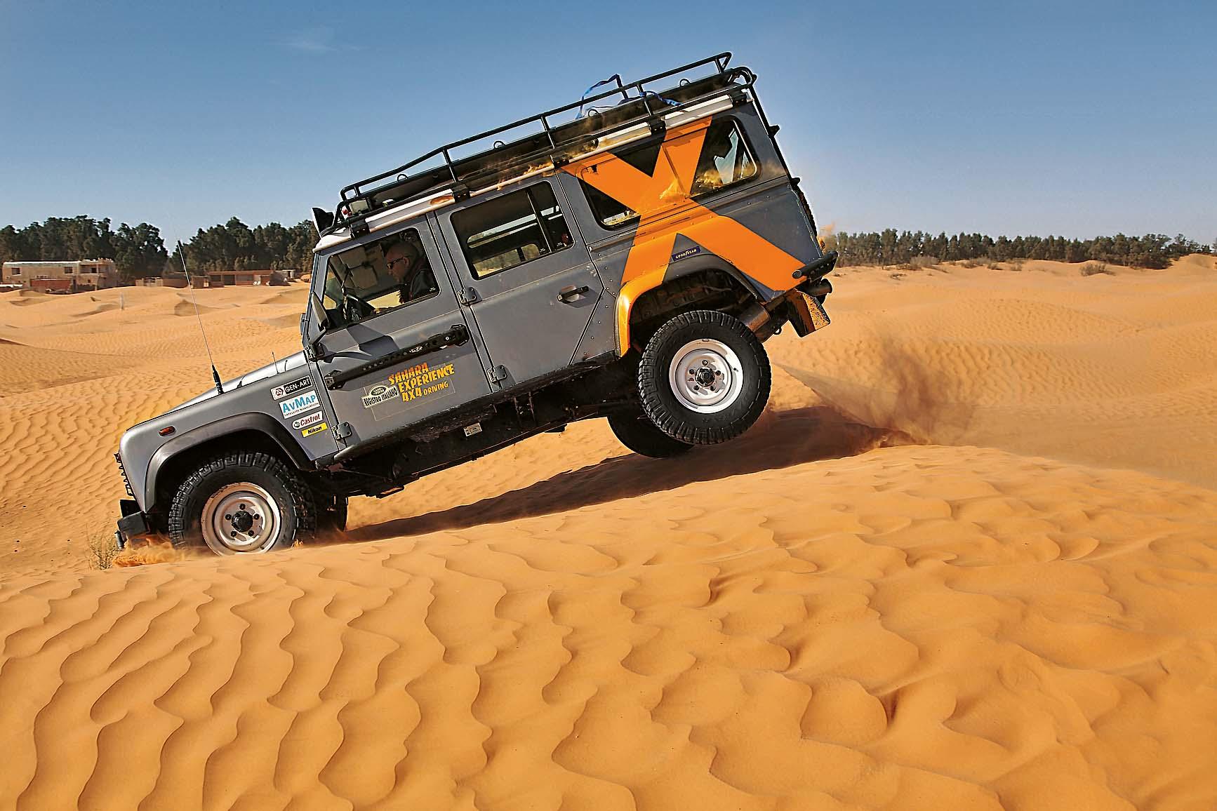 Трогаться на песке следует плавно, чтобы не зарыться. Разгоняться – ровно настолько, чтобы скорости хватило перевалить за гребень бархана. Если снять ногу с газа слишком поздно, дело кончится прыжком, как на фото справа, – можно повредить машину. Если, наоборот, прекратить разгон рано, легко зависнуть брюхом на гребне.
