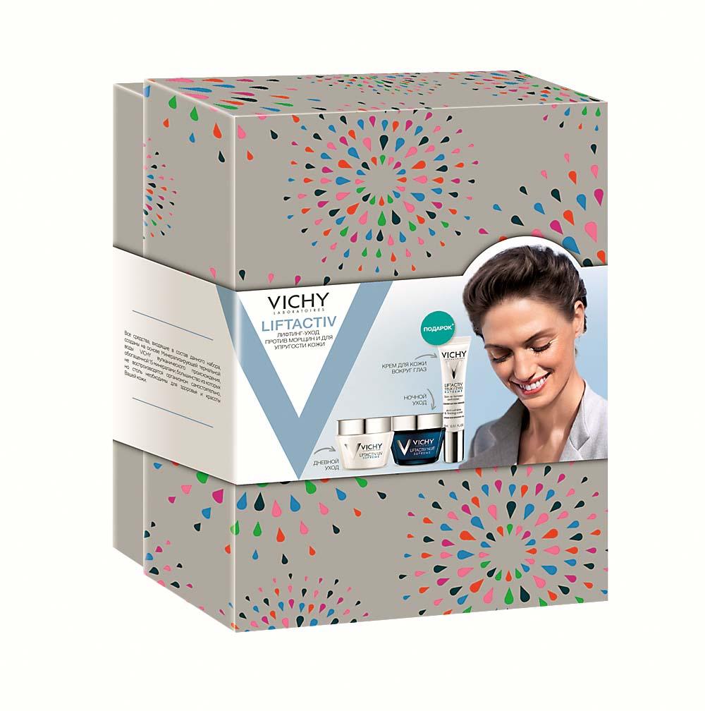 К предстоящим новогодним торжествам VICHY приготовила серию подарков – комплектов косметических средств. В них входят дневной и ночной кремы LIFTACTIV Supreme, а также крем для контура глаз. Косметика LIFTACTIV Supreme борется не только с существующими признаками увядания кожи (морщины, тусклый цвет лица и т.д.), но и не дают новым «проявиться» и накопиться на лице.