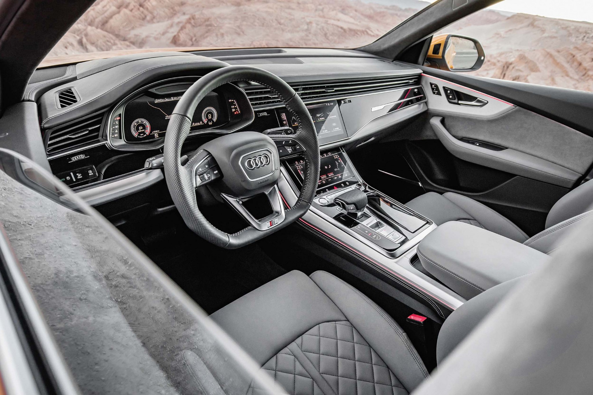 Пятиметровый кузов кажется гораздо компактнее, чем на самом деле. По сравнению с соплатформенным Q7 он ниже на 4 см и на 6 см короче, задняя часть визуально легче. Это не купе, конечно, но заднее стекло с большим углом наклона, спойлер в стиле A7 и массивные задние стойки смещают акценты восприятия. Отсюда и впечатление, что перед тобой спортивный хэтчбек, только высокий.