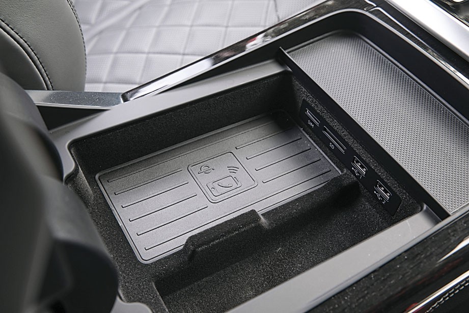 Даже странно, что на руле еще традиционные кнопки, а не мини-тачпады. Потому что пульты светотехники и четырехзонного климат-контроля уже сенсорные, приборы виртуальные, уровни пневмоподвески меняешь на центральном экране, отдельный переключатель для ездовых режимов тоже «ненастоящий». Когда глушишь мотор и панели гаснут, остаешься в окружении черноты с отпечатками пальцев. Но пока экраны работают, это красиво — графика хороша.