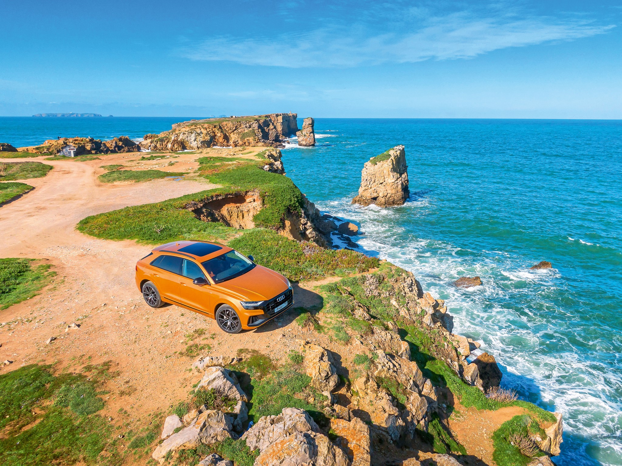 Португалия, окрестности Лиссабона. Выбираем режим Off -road, и пневматика подвески поднимает кузов Audi Q8 до максимума. ESP теперь допускает больше пробуксовки, мало ли что. Аккуратно выезжаем на берег океана. Ветер, ты здесь могуч! Высокие волны грандиозно расшибаются о скалы, бурлят пенные водовороты. Любоваться силами природы хочется долго, смотришь и смотришь.
