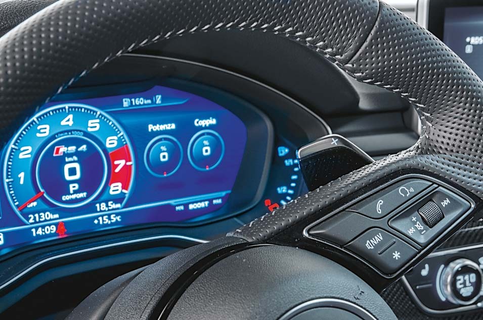 Но вернемся в сегодняшний день — а именно к фантастической способности RS4 Avant примирять противоположности. Чтобы их распознать, требуется от десяти до тридцати секунд: в режиме Comfort (и в Auto тоже) это семейный универсал A4. Расход топлива, конечно, повыше, чем у 2.0 TDI, но практичность, повседневное удобство и все присущее дизельному собрату словно под копирку.