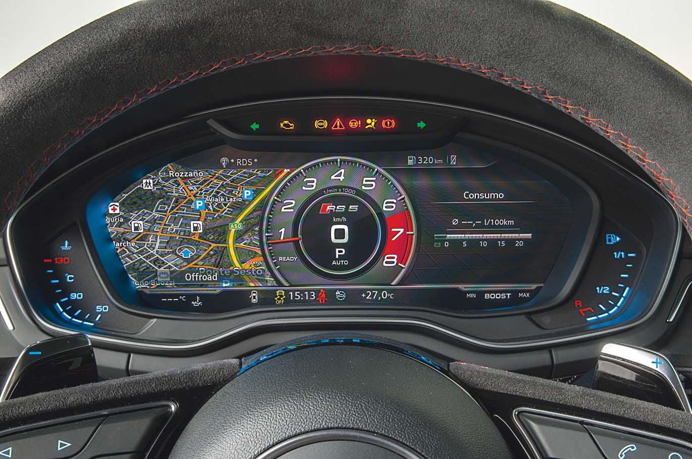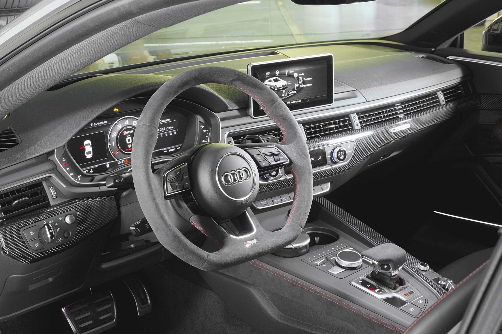 Честно говоря, о салоне рассказать особо нечего — никаких ярких отличий от A5: те же выверенная эргономика, практически полное повторение классических органов управления и мультимедийного комплекса. В этом безупречном сочетании немалую роль играет Audi Virtual cockpit, на протяжении вот уже трех лет подтверждающий свою невероятную эффективность. Харизма RS5 сосредоточена в деталях, за многие из которых, правда, придется доплатить, как, например, за красивейшие кожаные кресла с прострочкой, дорогую оплетку руля и множество элементов из углепластика. Но именно они придают общей картине элегантность.