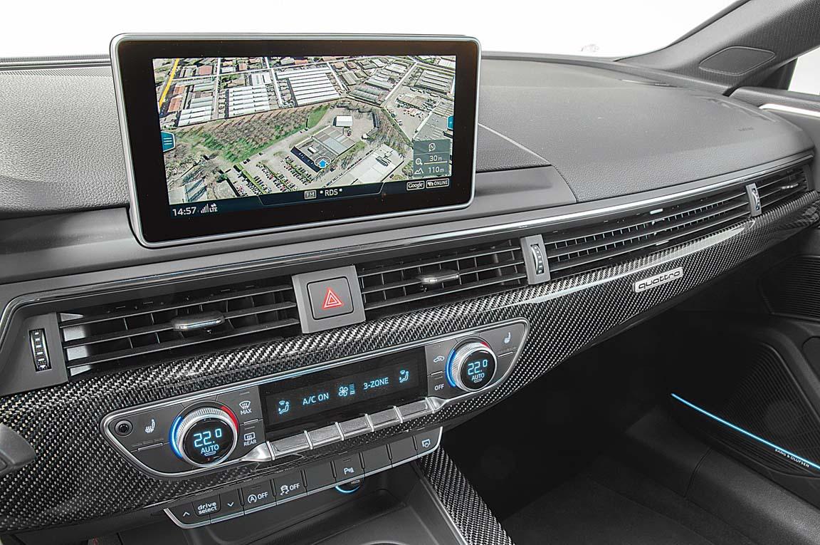 Чтобы удерживать в узде все это буйство, лучшим союзником выступает коробка передач — не робот S tronic с двумя сцеплениями, а классическая гидромеханическая восьмидиапазонная АКП ZF — такая же, как у S5. Немецкие инженеры изменили настройки, сделав ее гораздо более отзывчивой и быстрой по сравнению с аналогом на младшей модели. Характеристики автомата в целом хороши. Хотя, признаться, в нюансах превзойти коллег, готовивших Giulia Quadrifoglio или конкурентов с шильдиком BMW, им не удалось. Плюс коробка явно заслуживает более подобающих по статусу подрулевых лепестков. Нет, сделаны они неплохо, но в окружении других деталей пластик невольно хочется назвать сугубо бюджетным.