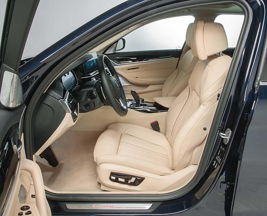 Прибавку в длину на 36 мм снаружи заметить сложно. Еще сложнее ее обнаружить внутри: запас пространства такой же, как раньше, его много для четверых и достаточно для пятерых. Впрочем, и в других деталях интерьер мощно связан с традициями. Хотя он стал гораздо богаче с точки зрения комплектаций – в этом «пятерка» мало чем отличается от 7-й серии, баварского флагмана. Нельзя получить пневмоподвеску от старшего брата (и это серьезное отличие, учитывая пробу автомобиля), но все остальное доступно: ключ-пульт со встроенным дисплеем, возможность автоматической парковки, дверные доводчики. А также полноуправляемое шасси и, из изысков, ароматизатор салона.