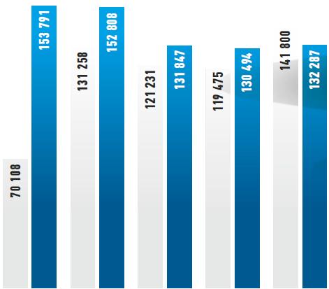 В прошлом году А-класс (белая шкала) сумел переломить пятилетнюю тенденцию на европейском рынке и обойти BMW (синяя шкала). В мире же с 2012 года было продано 960 000 «копеек» и 780 000 экземпляров А-класса. Для сравнения: за тот же период в Европе реализовали