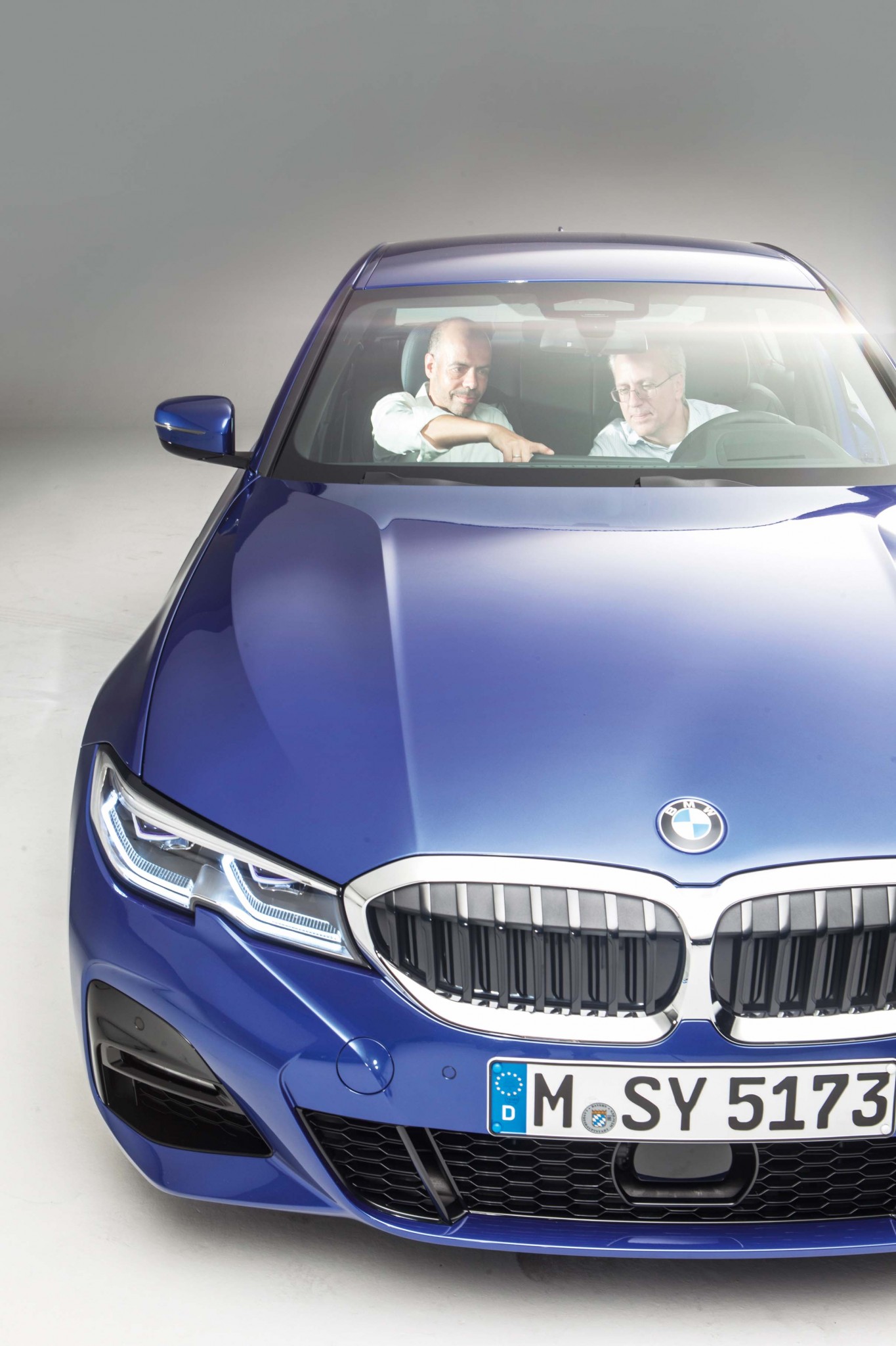 Штефан Хорн (слева), менеджер по продукту BMW 3-й серии, показывает, насколько изменился салон: именно этот аспект потребовал наибольших вмешательств. Экземпляр в комплектации M Sport выделяется особой отделкой больших воздухозаборников.