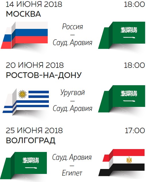 В Саудовской Аравии, которая хоть и не жалеет денег на привлечение иностранных специалистов, футболисты получили профессиональный статус лишь в 1990 году. Серьезного качественного скачка эти изменения так и не принесли. Если в 90-х национальная команда действительно стала выглядеть более весомо — взяла Кубок Азии и вышла в 1/8 финала на ЧМ-94, то сейчас конкурентоспособность «зеленых» вновь оценивается невысоко. Это связано с низкой интеграцией игроков в лучшие чемпионаты. При этом внутреннее первенство остается малопривлекательным с футбольной точки зрения. После попадания на Чемпионат мира в России спортивное руководство сборной Саудовской Аравии решило исправить ситуацию в стиле нефтяных королей. За хорошие деньги выкупили места для игроков в испанских клубах. В Испанию отправились: Салим аль-Давсари («Вильярреал»), Яхья аль-Шехри («Леганес») и Фахад аль-Муваллад («Леванте»). Насколько столь неординарный шаг будет действенным — увидим. В любом случае, для сборной России это лучший соперник из всех возможных, и обыгрывать Саудовскую Аравию российские футболисты обязаны в любом состоянии.