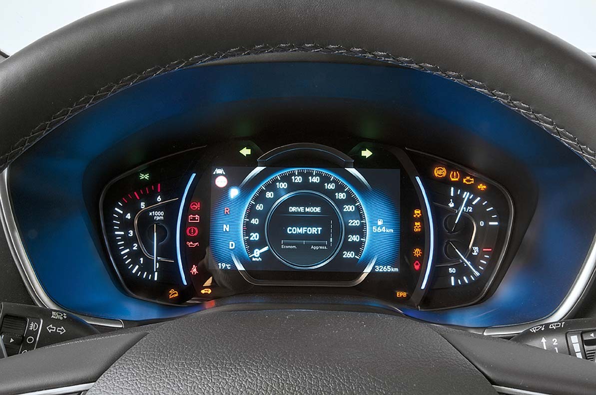 Визуальным и более материальным выражением качественного роста стало и увеличение физических габаритов — Santa Fe дотянулся до 4,77 м. Комфорт же всегда был одной из сильнейших сторон модели. Нет и тени сомнения, что новый Santa Fe — автомобиль очень солидный и качественный. Его салон — один из самых гостеприимных в классе, и не только за счет запаса свободного пространства. Отлично спрофилированы кресла, новая панель выполнена аккуратно и сконфигурирована с умом.