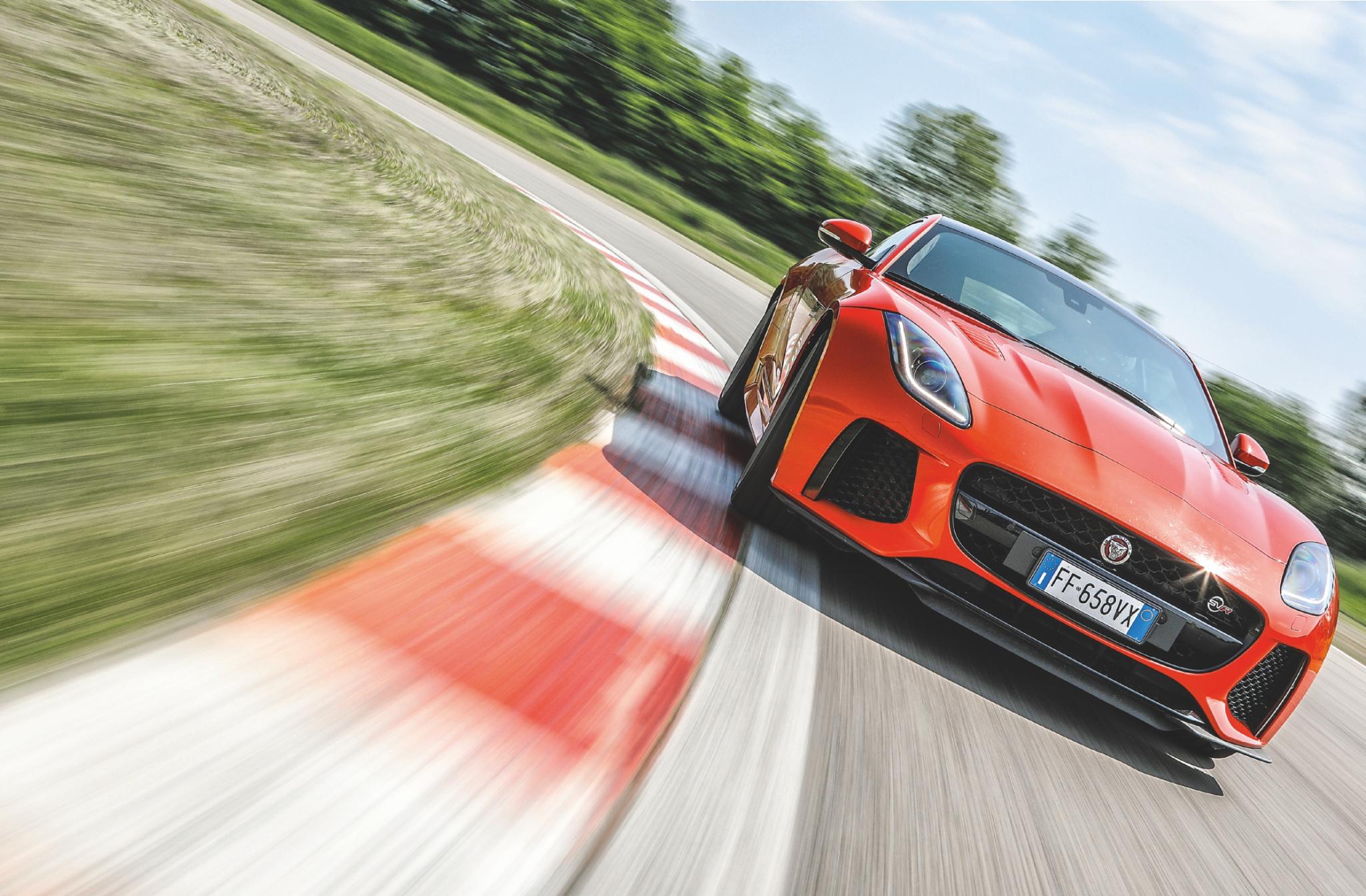Лишь на треке оказывается, что часть информации не доходит от колес до рук водителя, особенно в быстрых участках. Полный привод помогает управляться с многочисленной конницей и выгрузить на асфальт всю доступную тягу. И все же для укрощения SVR от водителя требуется решительность, даже несмотря на эффективность электронных систем. Изменения в передней подвеске, особенно применение нового – более тонкого – стабилизатора поперечной устойчивости, позволяют купе еще увереннее заходить в повороты. Раскачанный F-Type ведет себя в них ровно, нейтрально, без склонности к недостаточной или избыточной поворачиваемости. Естественно, если его спровоцировать, он стремится расширить траекторию кормой, особенно когда асфальт под колесами неровный. Однако в этом случае моментально контрмеры предпринимает ESP.