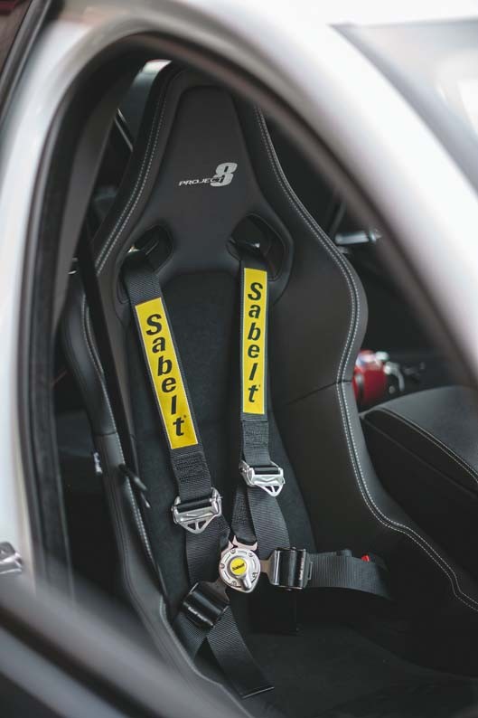 Полный привод позволяет Project 8 относительно легко выгружать на асфальт все 600 л.с., которые выдает наддувный V8. Вместо заднего дивана может быть установлен каркас (фото внизу), который в том числе за счет добавления нескольких усилительных пластин увеличивает жесткость кузова на кручение на 27%. На этой версии система пожаротушения — штатное оборудование.