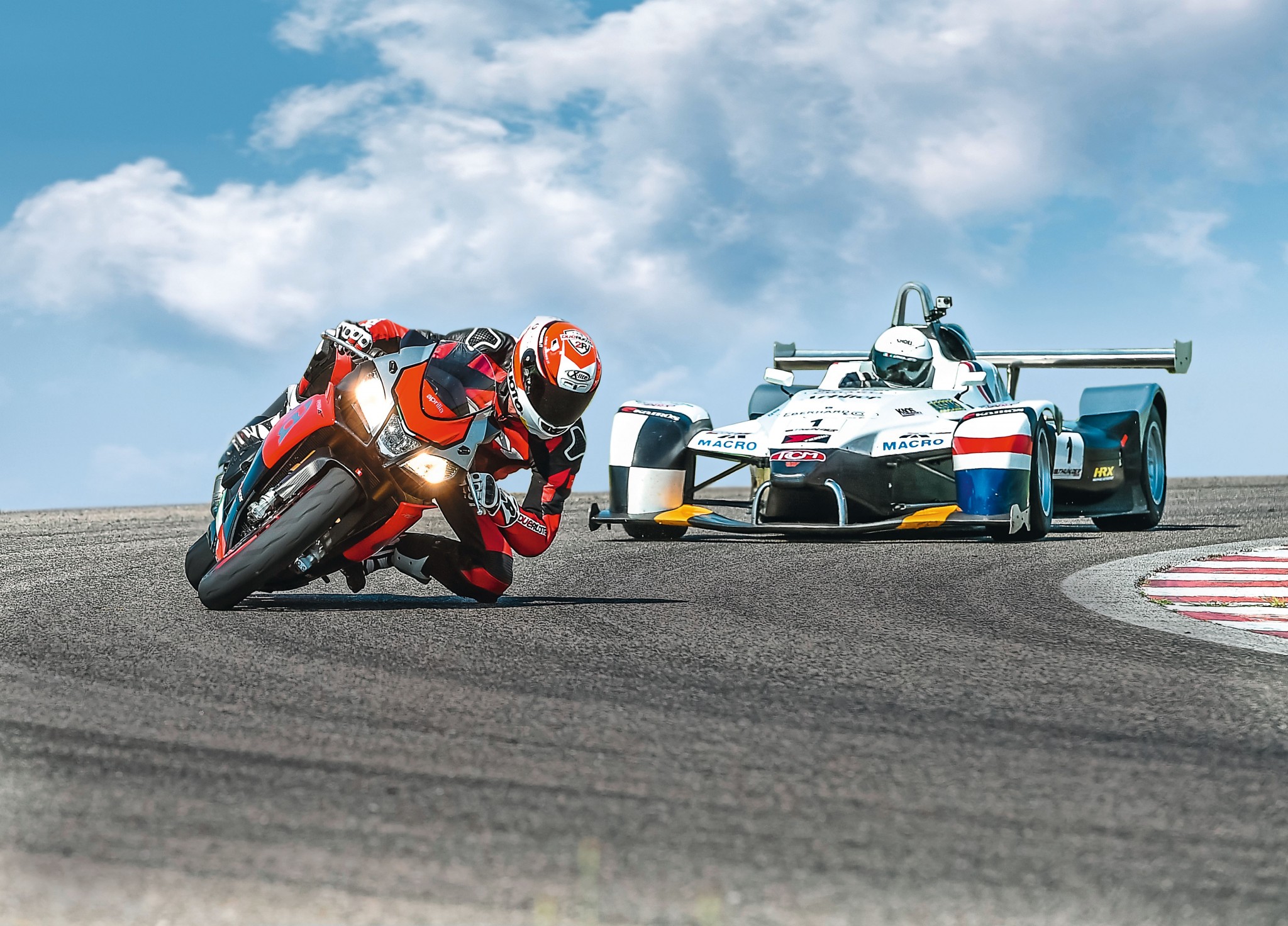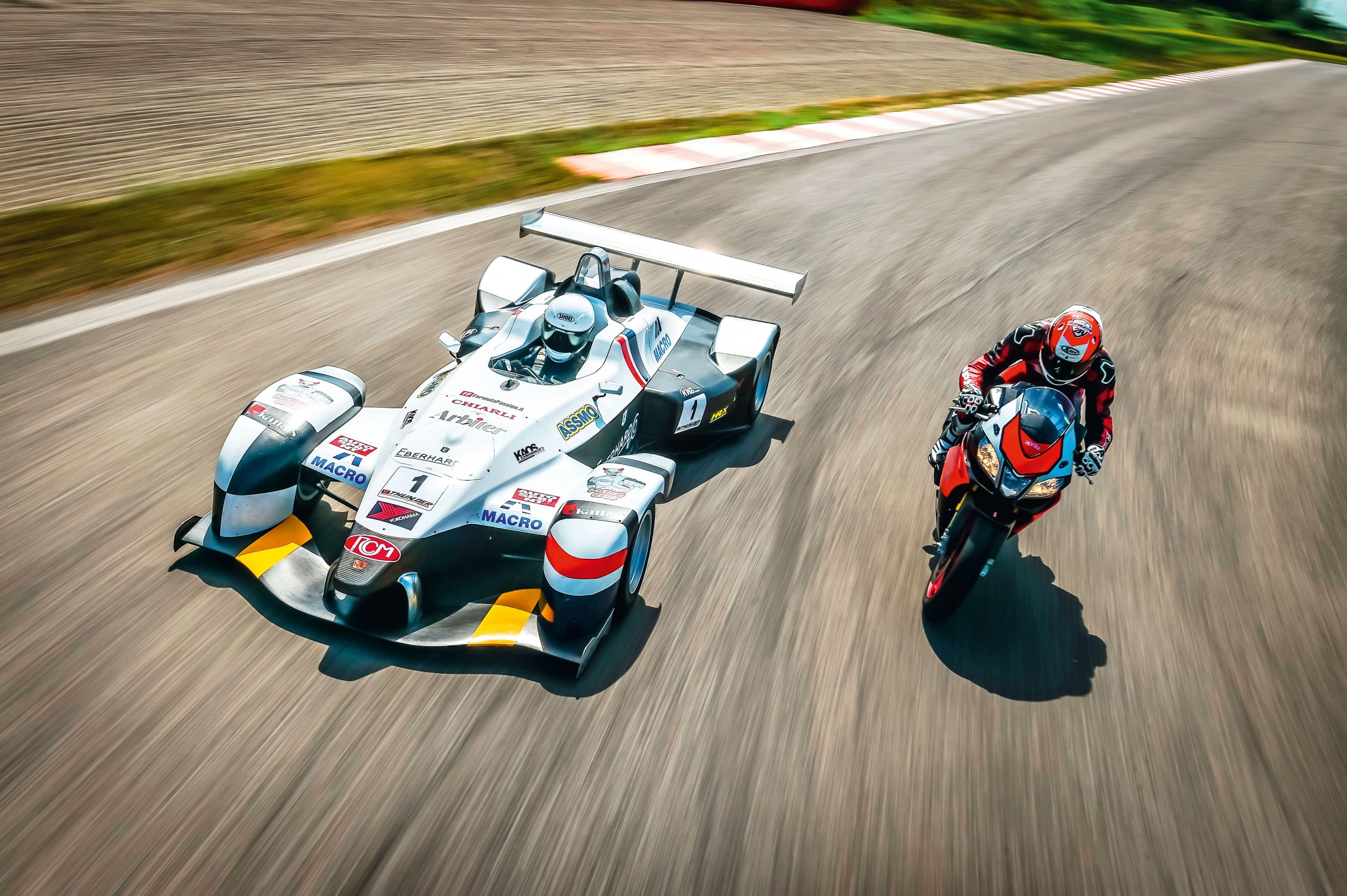 Quattroruote и прежде проводил подобные тесты: четыре колеса против двух. Но в этот раз решили все упростить и сыграть по правилам: у гоночного болида тот же мотор, что у мотоцикла, одна и та же трасса, один день. Так что там с числом колес?..