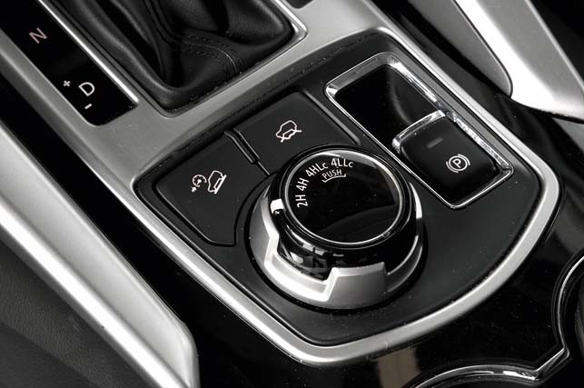 Но хорошие обзорность, вместимость и эргономика — лишь гарнир к основному блюду, ради которого и покупают Pajero Sport. Фирменная полноприводная трансмиссия Super Select II на нынешнем «Спорте» модифицирована. Выбор режимов теперь осуществляется шайбой на тоннеле, выше которой расположились клавиши внедорожных программ ESP и ассистента спуска. В конструкции привода вискомуфту заменили самоблокирующимся дифференциалом Torsen. И если прежде в обычных условиях движения на полном приводе момент распределялся поровну, то теперь в пропорции 60:40 в пользу задней оси. Кроме того, Torsen раньше понимает, когда начинается пробуксовка, и блокируется оперативнее.