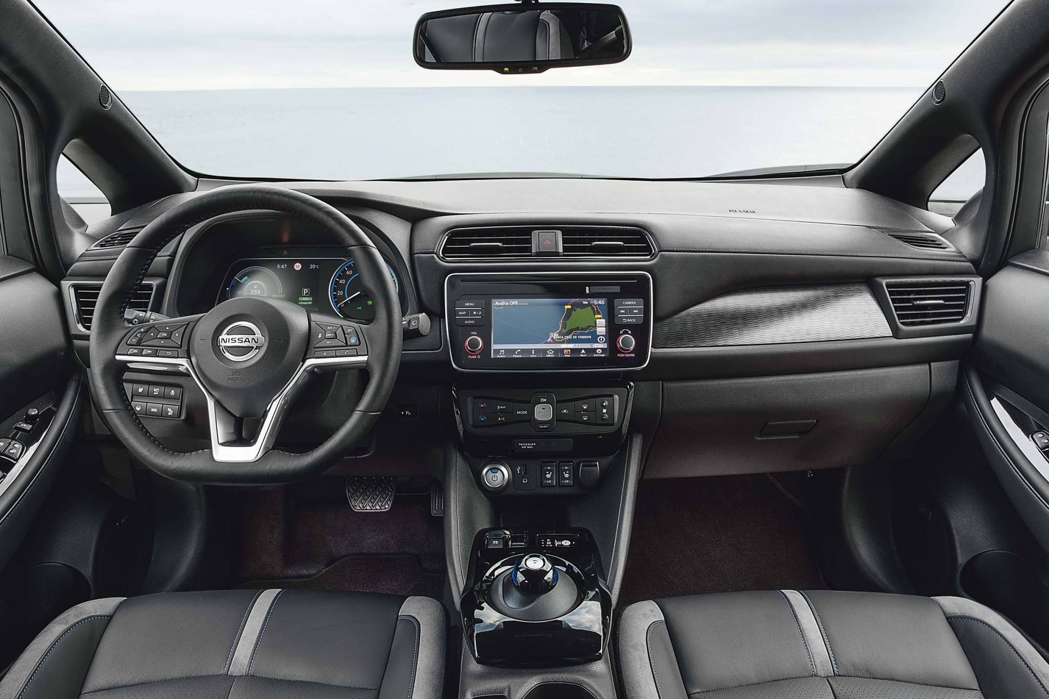 За исключением ряда моментов, салон богато укомплектованного Nissan Leaf 2.0 встречает бытовой традиционностью с плюсами и минусами. Кожа кресел здесь сочетается с жестким пластиком отделки, высокая посадка благоволит обзорности, а низко расположенный руль регулируется лишь по углу наклона. Панель приборов сочетает крупный многофункциональный цифровой дисплей с аналоговым спидометром, развлекательная система с 7-дюймовым экраном поддерживает CarPlay и Android Auto.