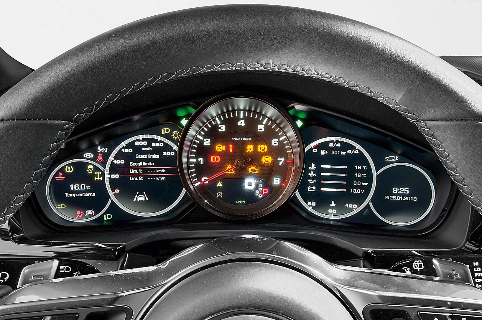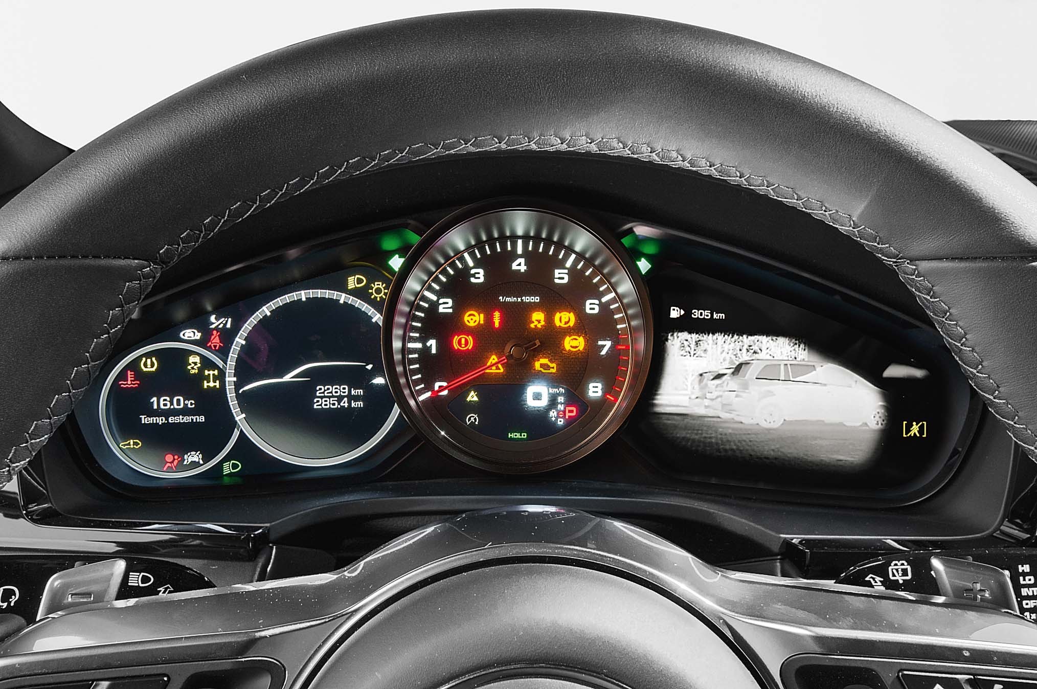 Последний, к слову, производит весьма сильное впечатление. Щиток приборов, передняя панель и консоль повторяют схему, опробованную на Panamera. Традиционно расположенный по центру крупный тахометр обрамлен двумя жидкокристаллическими дисплеями, воспроизводящими (в том числе по стилю) ряд круглых приборов — отличительную черту кокпитов Porsche, начиная с 911-го. Впрочем, картинку на экране можно настроить по своему усмотрению — например, вывести данные бортового компьютера, навигационной карты или же изображения с инфракрасной камеры, способной видеть в темноте дальше, чем бьет свет фар.