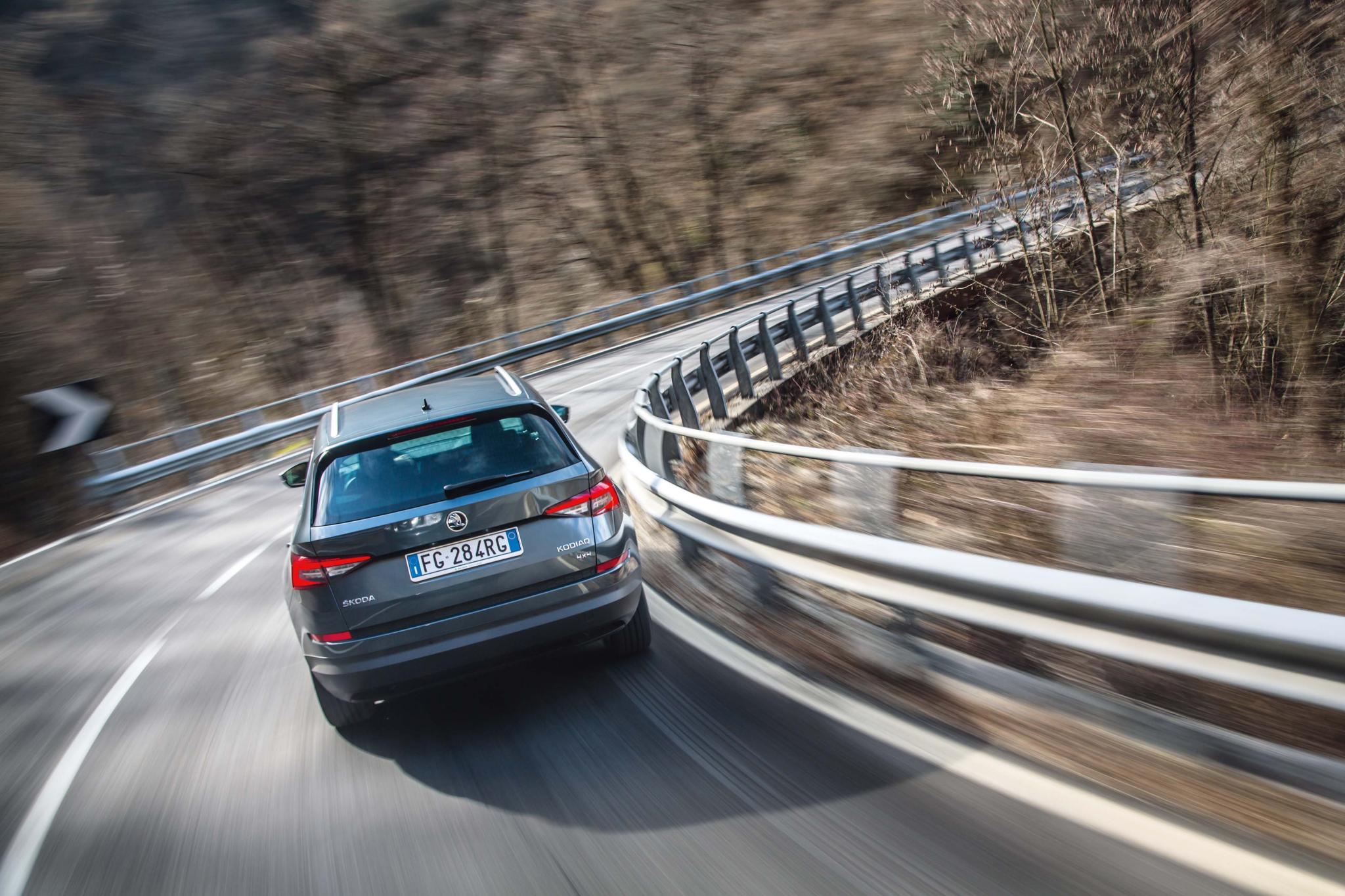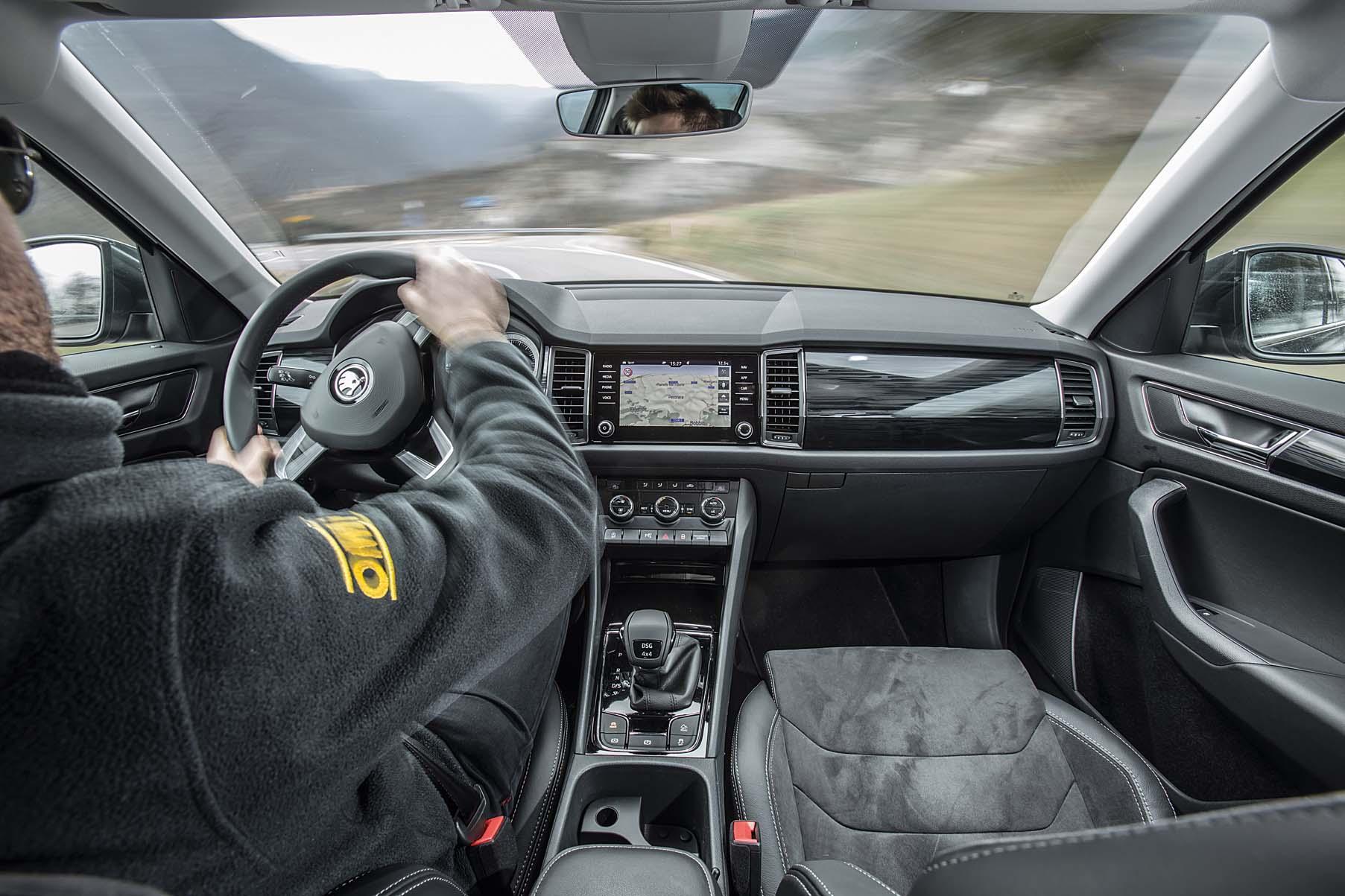 Тем, кто считает, что крупный кузов – препятствие для удовольствия от вождения, придется изменить свое мнение. Кроссовер Skoda вовсе не маленький, но он проворен и приятен. Естественно, на раллийные спецучастки отправляться не стоит, но можно рассчитывать на отличные характеристики платформы MQB. На магистрали SUV великолепен: Kodiaq едет уверенно и довольно тихо, мотор 2.0 TDI крутится примерно на 2000 об/мин. Немного шума – аэродинамического – возникает в районе зеркал и стоек.