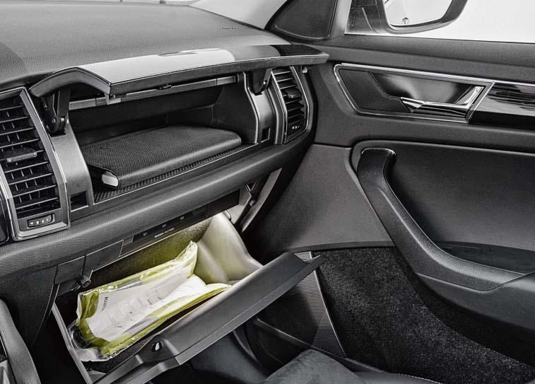 Разработчики Kodiaq не стремились удивлять клиента любой ценой (приборная панель, например, аналоговая), и все же тут везде замечаешь настоящие изюминки, такие как отделка дверных карманов тканью или двойной ящик на передней панели.