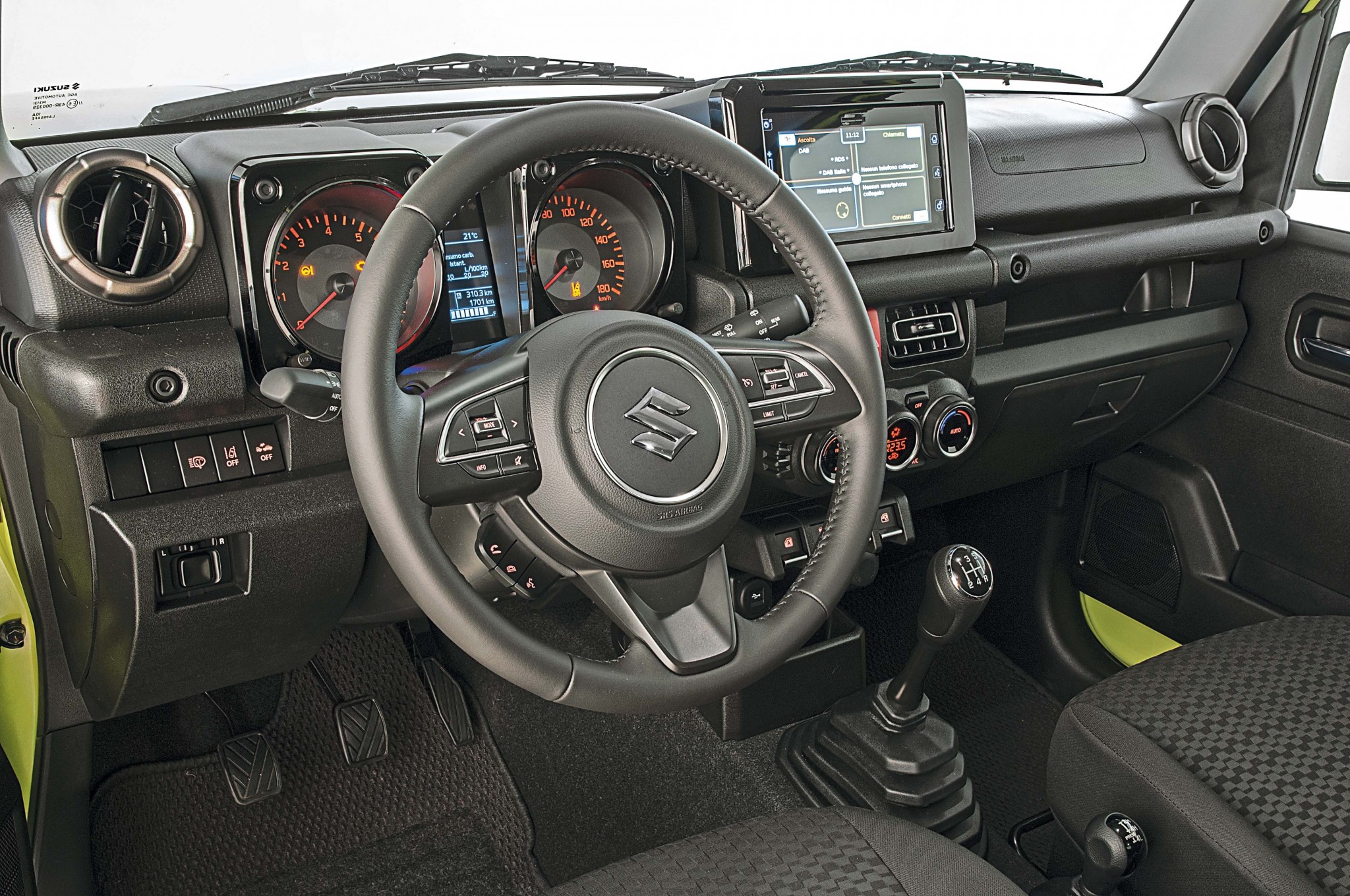 На асфальте заметно, что Jimny стал тише, а его кресла теперь гораздо удобнее. Обзор отличный по всем направлениям, но камера заднего вида была бы не лишней, во всяком случае среди опций — в их списке есть круиз-контроль, системы автоматического торможения и слежения за рядностью.