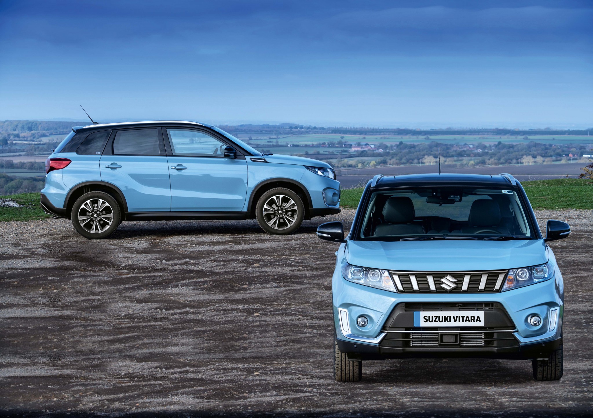 Доступную палитру цветов, в которые можно окрасить кузов Vitara, пополнили два колера: Grayish Ice Blue (именно в этом цвете машины на больших фото) и Solar Yellow (на фото вверху)
