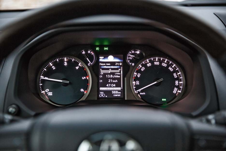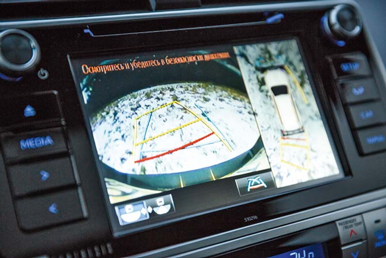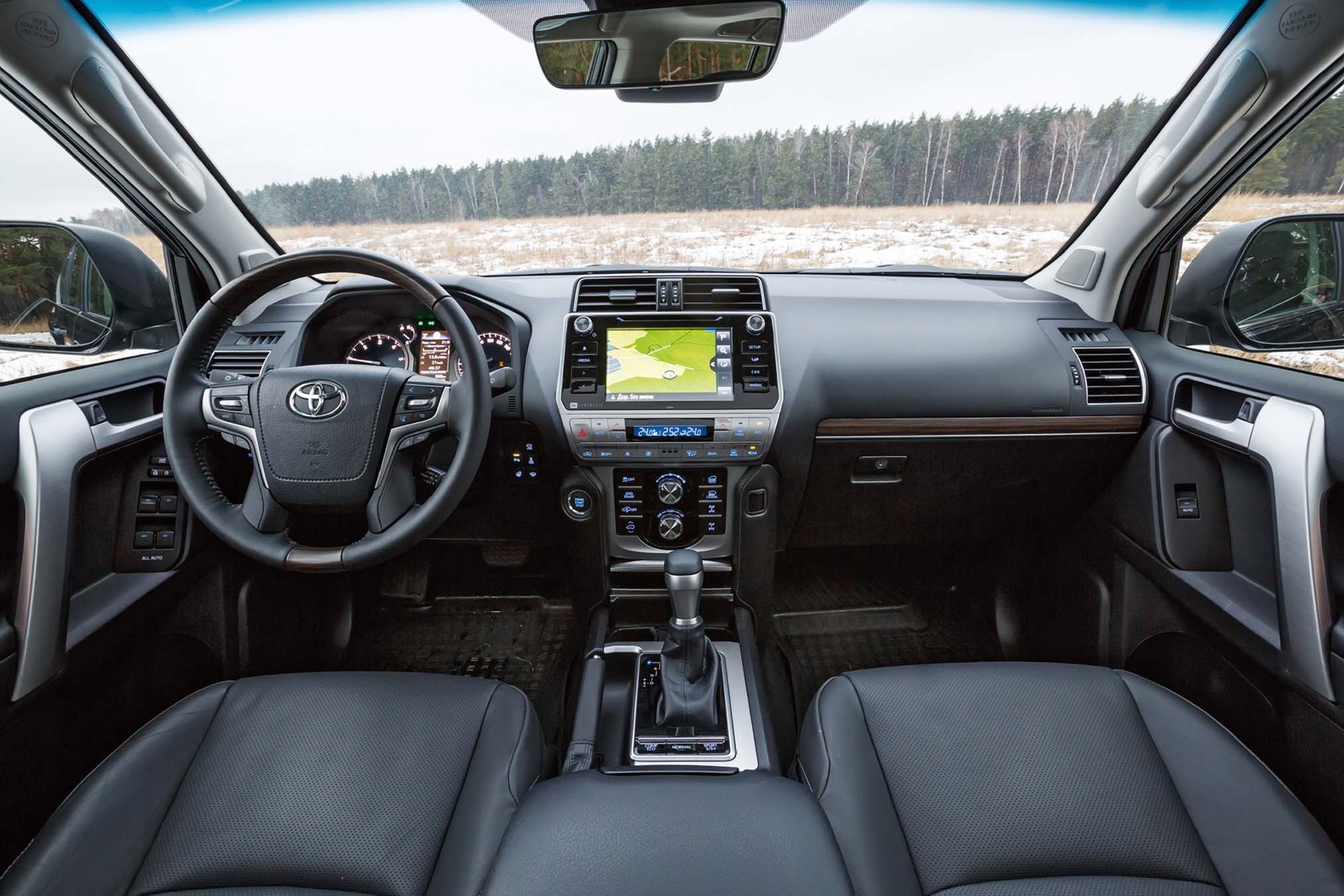 Формы оптики и решетки радиатора после рестайлинга сделали Prado еще более похожим на старший кроссовер Toyota. Главная же деталь тут — капот с характерным углублением в центре. Теперь в анфас и не разберешь, «отец» перед тобой или «сын». В салоне влияние авторитетного родственника тоже заметно, хотя по сравнению с дореформенной машиной архитектура внутреннего пространства изменилась несильно. В глаза бросаются две массивные шайбы управления системой полного привода (вместо одного селектора) и 8-дюймовый сенсорный экран «мультимедийки».