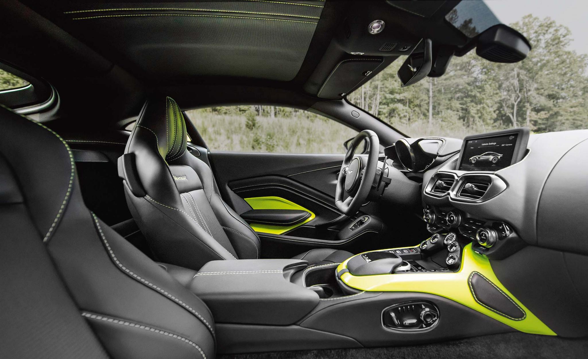 Если во внешности Vantage нет ничего лишнего (особенно без пакета отделки карбоном), то внутри дизайнеры отыгрались: здесь видны цитаты из McLaren и Lamborghini. Тут слишком много клавиш и геометрических форм, а пульт управления медиасистемой будто в неизменном виде позаимствован у Mercedes. «Мы хотели, чтобы Vantage отличался от DB11», — оправдываются дизайнеры.