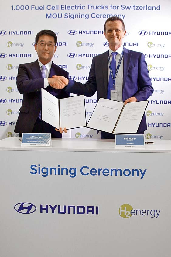 Инженеры Hyundai делают ставку на водородные технологии. Следующий этап после запуска серийного кроссовера Nexo — развитие коммерческого транспорта на топливных ячейках. На моторшоу в Ганновере IAA Commercial Vehicles 2018 корейский бренд не только представил серийную модель такого грузовика, но и анонсировал амбициозные планы в сегменте. В течение ближайших пяти лет 1000 грузовых автомобилей на топливных элементах начнут осуществлять перевозки по дорогам Европы. Проект Hyundai станет развивать в сотрудничестве со швейцарской компанией H2 Energy (H2E), специализирующейся на технологиях добычи электроэнергии из топливных элементов.
