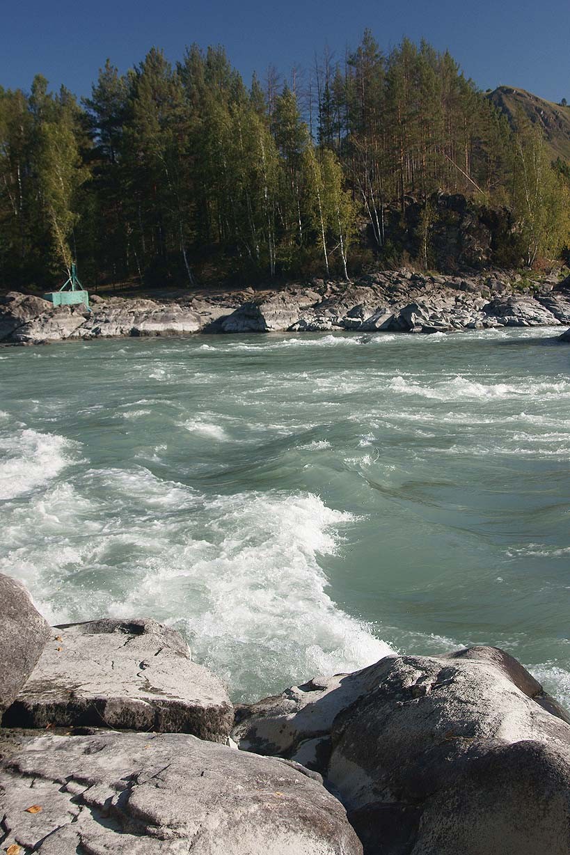 В этих краях не действует американский принцип «бамперного» туризма: поставьте свою машину сюда, выйдите и посмотрите туда, если есть с собой фотоппарат, снимайте вон то. Фотографировать можно все и с любого места. Будет красиво. Хотя достопримечательностей в привычном нам понимании на Алтае немного — он весь одна большая достопримечательность. По большому счету, когда навигатор отключился, мы не особо переживали, дорога-то одна! Зато какая — знаменитый Чуйский тракт, воспетый в песнях и легендах. Он тянется через весь Алтайский край с севера на юг и упирается в границу с Монголией. Дорога считается трассой стратегического значения и содержится просто в идеальном состоянии. Чего не скажешь про ее многочисленные ответвления. Но ехать по ним особо некуда. Все упираются либо в очень быструю и полноводную в это время года реку Катунь, либо в предгорья.