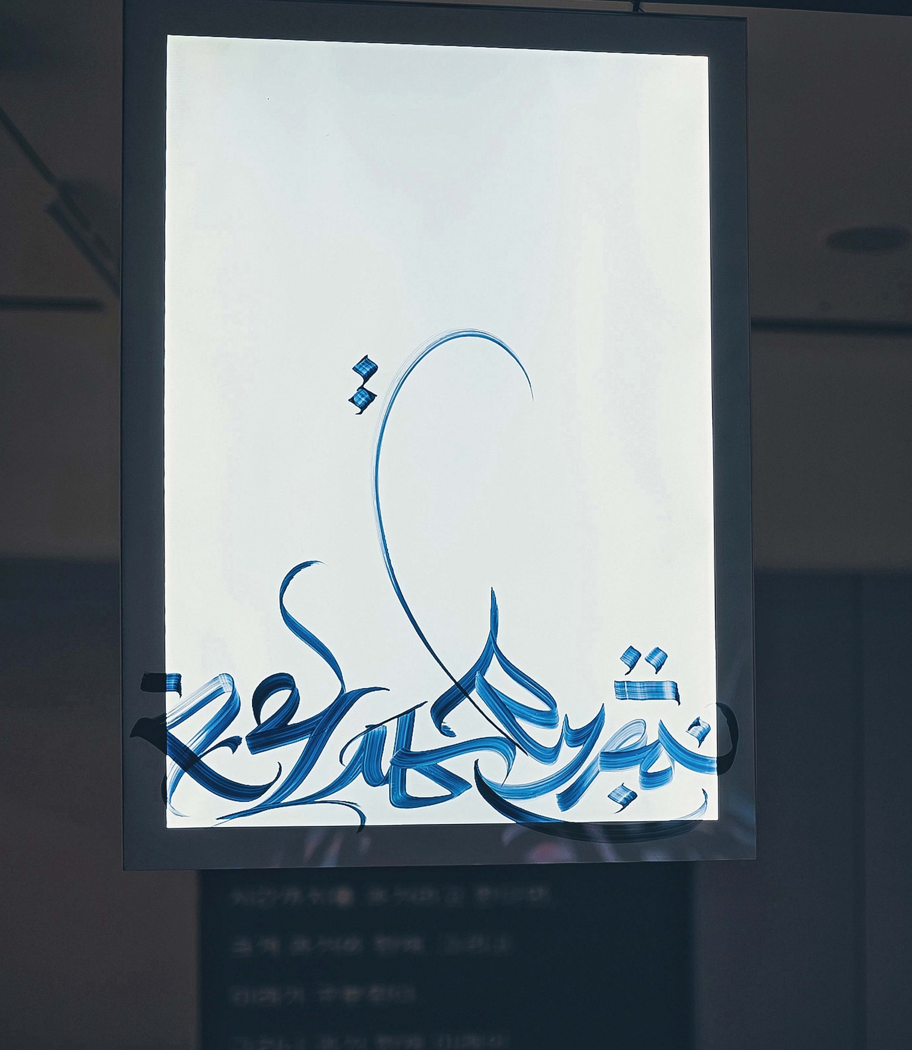 Именно так, каллиграфическим перформансом открылась в имиджевой галерее Hyundai на Новом Арбате выставка Покраса Лампаса (Pokras lampas) «Line. Fusion. Future. Линия. Синтез. Будущее». Художник рисовал литеры и знаки и объяснял зрителям смысл начертанного. Все в интерьере Hyundai Motorstudio в тот день было покрыто кириллицей, латиницей, иероглифами и вязью. Направление, в котором работает художник, называется каллиграффити. Покрас Лампас, известный в обычной жизни как Арсений Пыженков, считает, что будущее за новым языком и новым письмом, в которых свойственные традиционным языкам кодировки будут синтезированы в единую систему визуальных образов, знаков и фонетики. Арт-проект, реализованный в Hyundai Motorstudio, — попытка художника погрузить зрителя в пространство, где стрит-арт и каллиграфия становятся посредниками в разговоре о таком будущем.