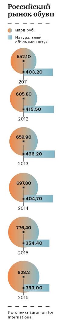 По схожему пути развивается «Обувь России»: по данным Антона Титова, в 2016 году рост по группе «аксессуары и одежда» составил 30%, продажи обуви растут куда медленнее — сопоставимые продажи в натуральном выражении выросли только на 7%.