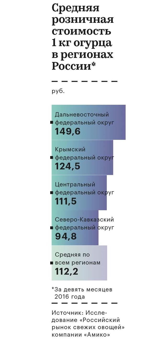 По его оценке, емкость рынка так велика, что места на нем хватит всем. «Мы открывали компанию еще до [продуктового] эмбарго, потому что даже с учетом всех присутствующих на рынке импортных продуктов ниша была почти свободна», — утверждает бизнесмен. Аналитики консалтинговой компании «Амико» с Лашиным в целом согласны: там отмечают рост потребительского спроса на свежие овощи, в частности на огурцы и помидоры, а также что в последнее время наблюдается отток потребителя с рынков в супермаркеты.