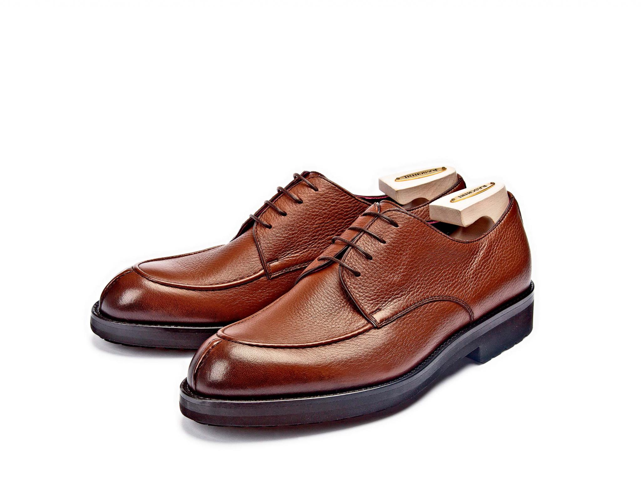 Еще совсем недавно в бизнес-среде бытовало мнение, что в офис можно носить ботинки только черного цвета. Десять лет назад туда же пытались надевать черные костюмы, что в принципе противоречит дресс-коду (такие стоит приберечь для вечера, коктейлей и приемов). В обществе победивших серых, клетчатых и полосатых пиджаков отпала и необходимость носить исключительно черную обувь. Лучшая пара для подобной деловой униформы — коричневые ботинки, для серых костюмов могут подойти также и темно-бордовые. На каждый день выбирайте ботинки-дерби с менее формальной открытой шнуровкой по сравнению с оксфордами. Большой выбор подобных можно найти у марки Raschini, которая особое внимание уделяет ручному производству как своих пиджаков, так и аксессуаров и, конечно, обуви.