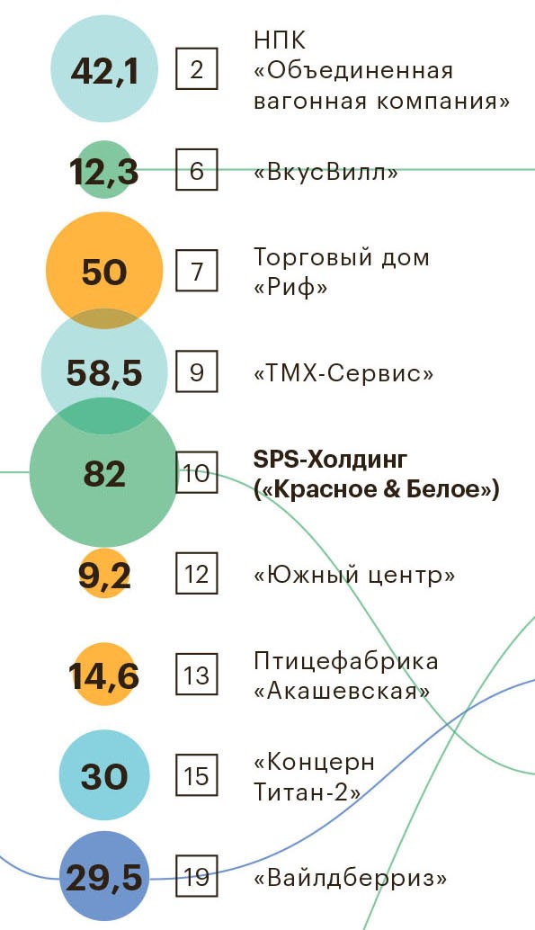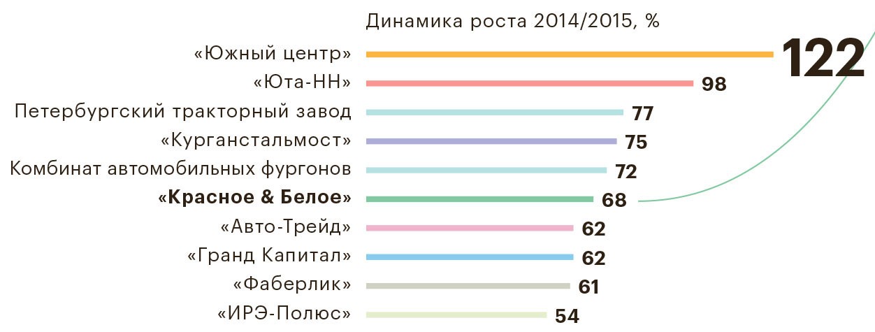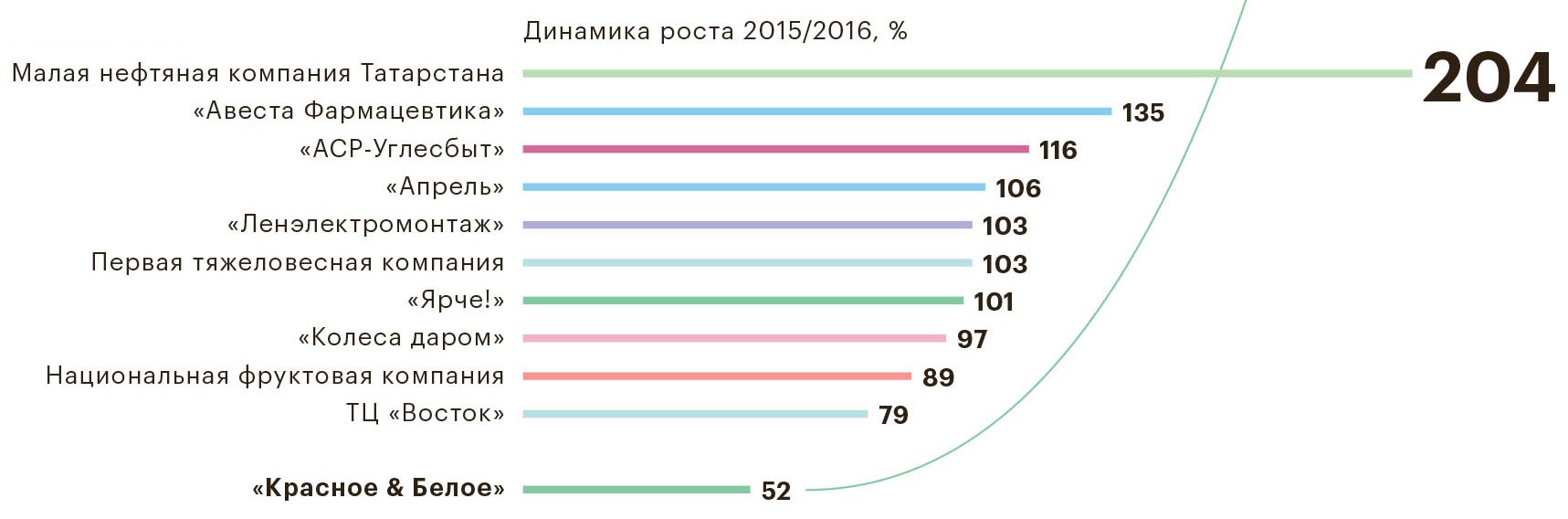 Сеть «Красное & Белое» остается единственным участником рейтинга, который не выпадал из топ-50 за все пять лет подсчета. В 2018-м компания вернулась в топ-10, нарастив выручку на 52%