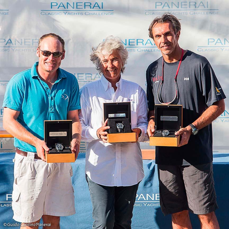 Яхтсмены-триумфаторы получают в награду спортивные часы Offi cine Panerai. Часовым трофеем этого года стала модель Radiomir Black Seal Logo Acciaio 45 mm. Это классические часы Panerai в узнаваемом корпусе, изготовленном из особой аустенитной нержавеющей стали AISI 316L, которая содержит в своем составе 16–18% хрома, 11–14% никеля и 2–3% молибдена. Точность и надежность калибра Panerai OP II с 56-часовым запасом хода подтверждены сертификатом COSC