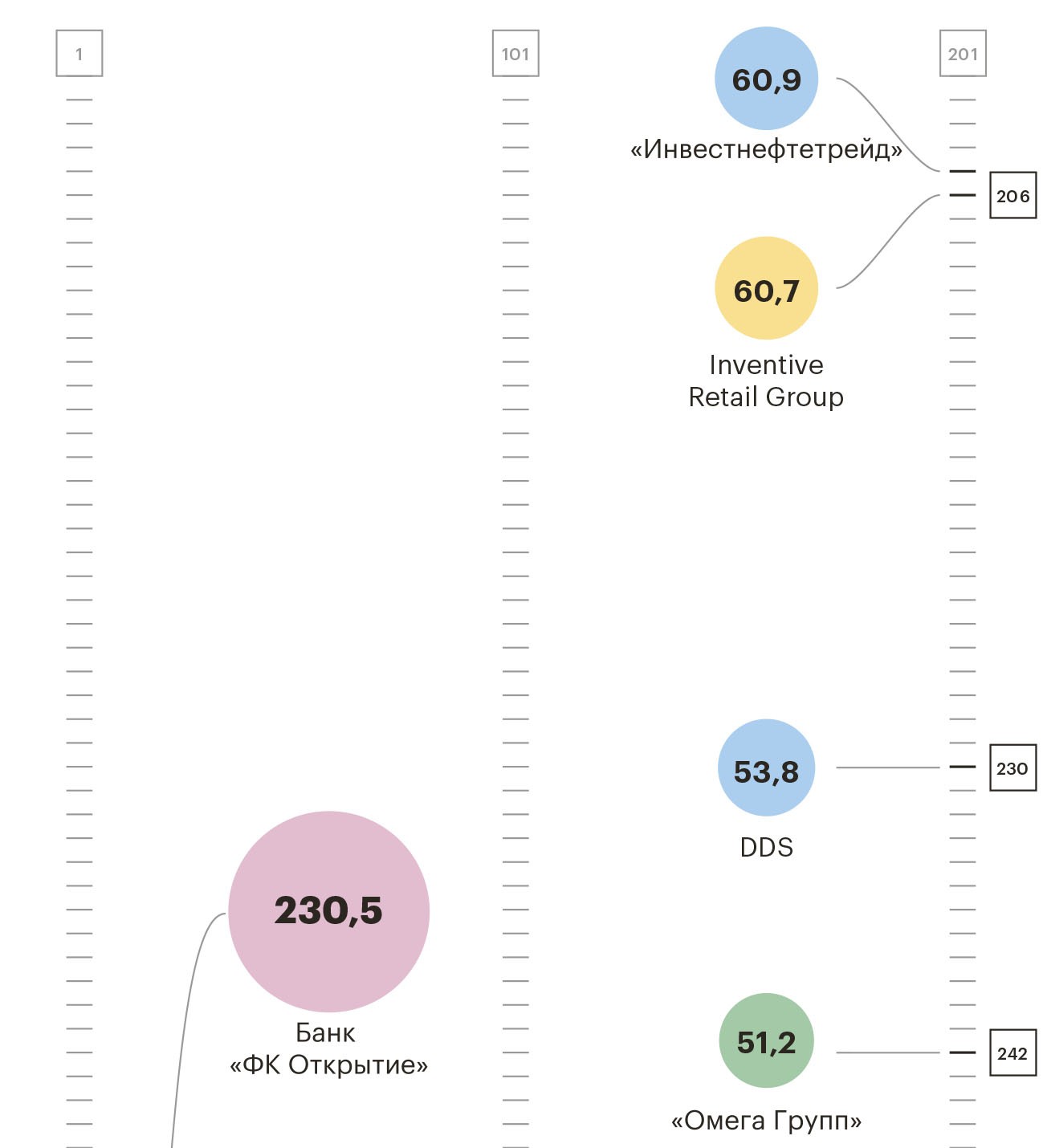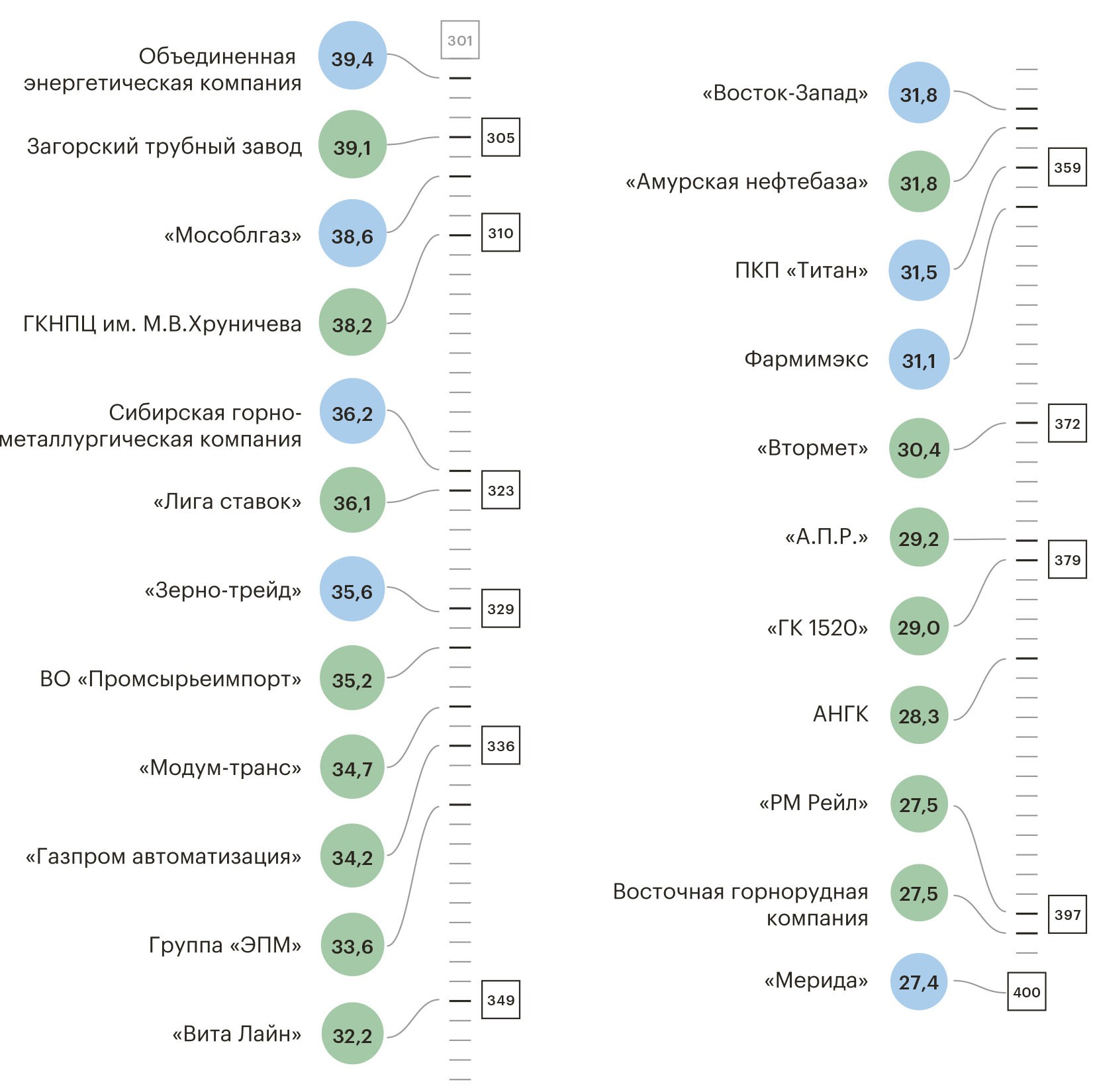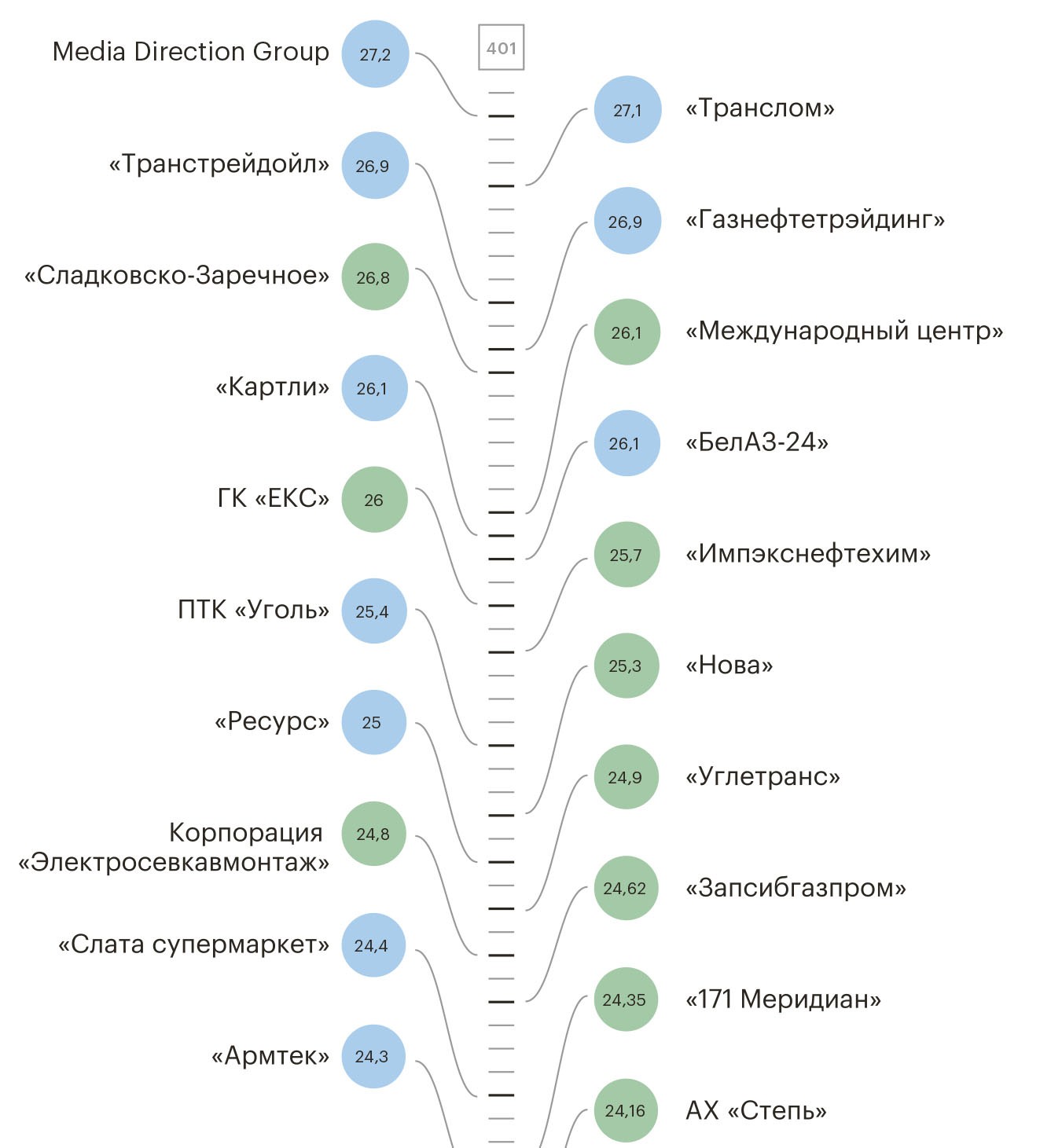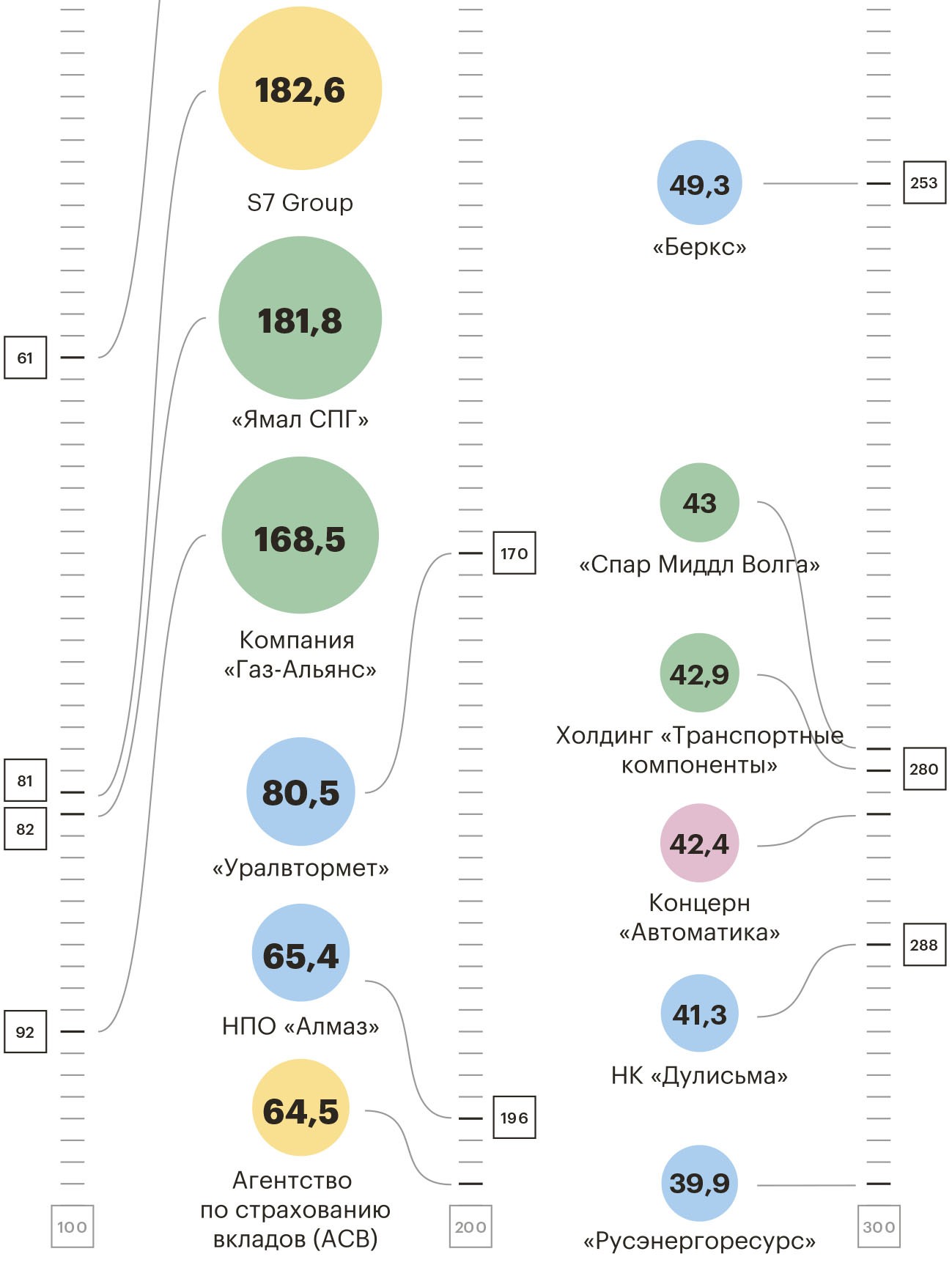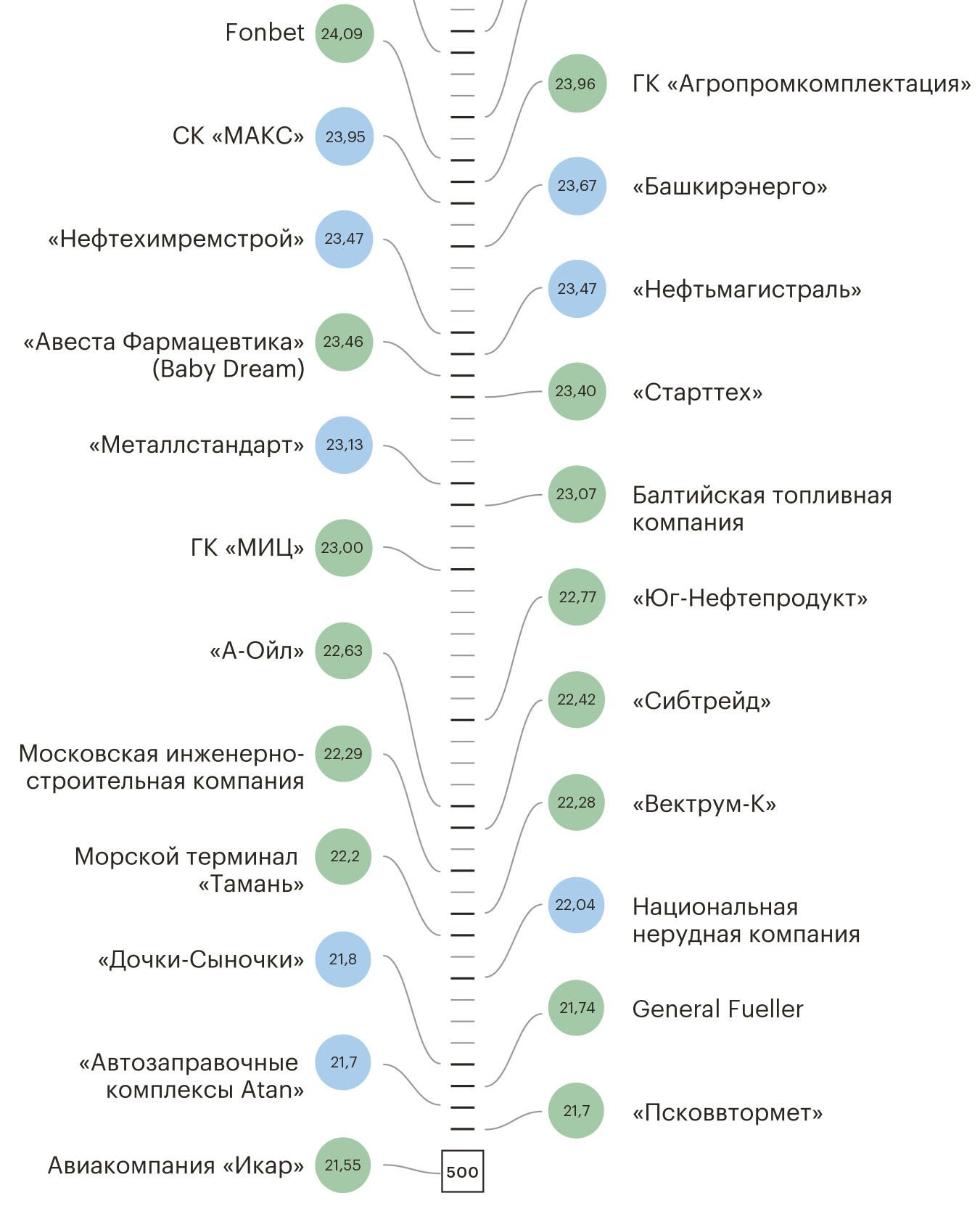 Самое большое подкрепление в этом году — 20 компаний — получил нефтегазовый сектор. В секторе «Металлы и горная добыча» появилось 11 новых компаний. Десяткой новых участников рейтинга пополнился сектор «Дистрибуция» — заслуженное третье место. Четвертое место разделили «Транспорт» и «Девелопмент и строительство» — у них по пять новичков. На пятом месте — «Торговля» и «Электроэнергетика», в эти сектора пришли по четыре новичка.