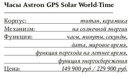 Свои первые кварцевые «Астроны» Seiko выпустила в далеком 1969 году, и лишь спустя 40 с лишним лет, в 2012 году, появились Astron GPS Solar Chrono — практически вечные часы, способные устанавливать точное время в любой точке мира по спутникам и питающиеся энергией света. Новый калибр 8х22 уменьшился в размерах, стала меньше и кольцевая антенна, принимающая сигналы GPS, но это никак не сказалось на технических характеристиках часов: точность хода колеблется в пределах плюс-минус 15 секунд в месяц. Новые модели с функцией мирового времени (в 40 часовых поясах) получили корпус из титана с суперпрочным покрытием диаметром 44,8 мм и толщиной 12,4 мм. Одна из моделей с циферблатом из темного перламутра выпущена лимитированной серией в 3500 экземпляров.