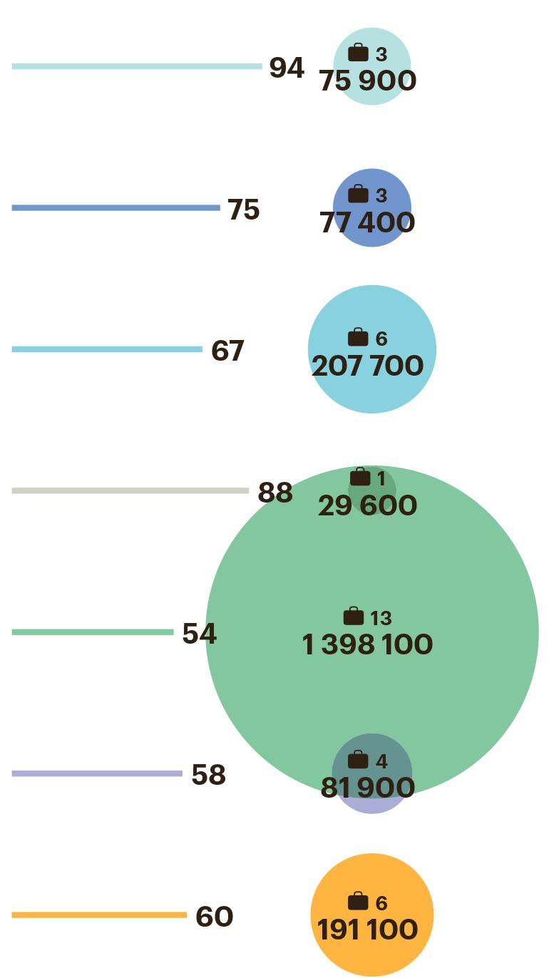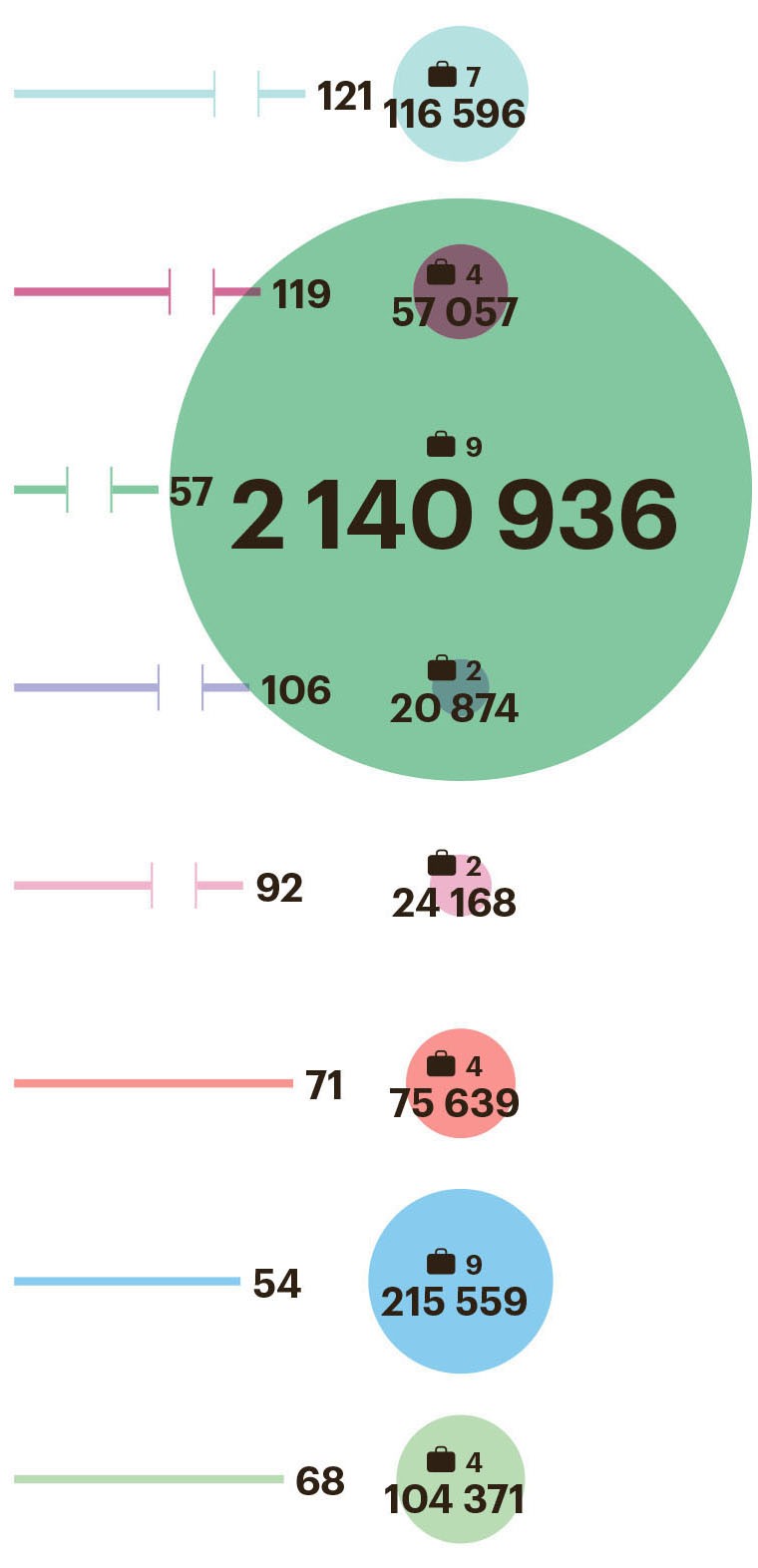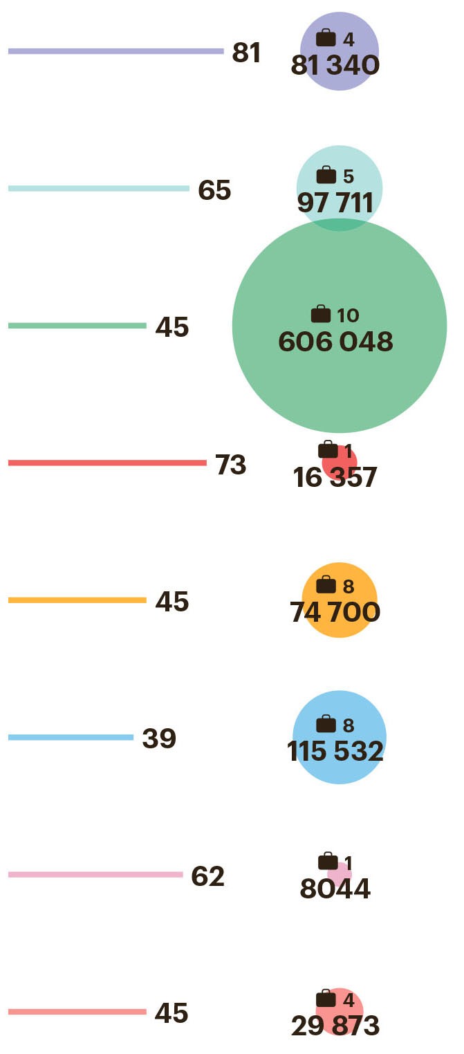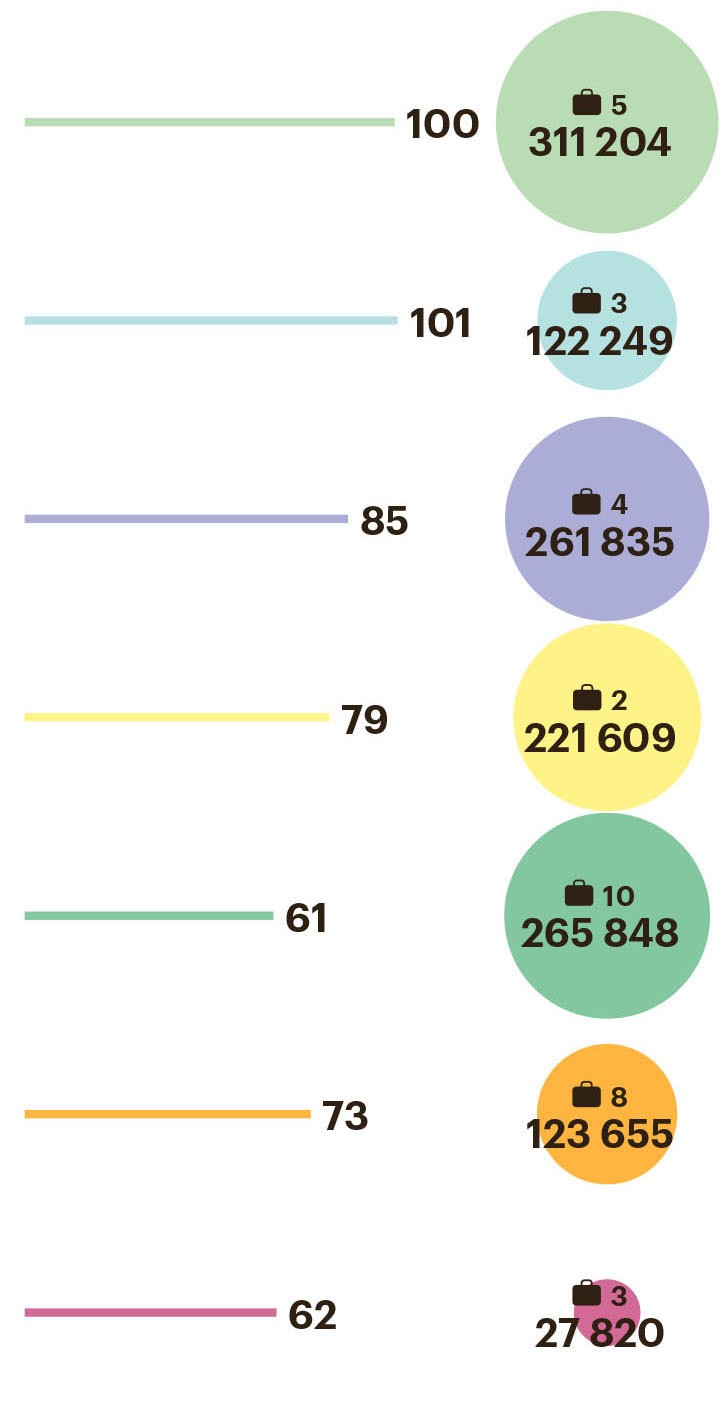 Примечательно, что розничная торговля никогда не была лидером по темпам роста среди других отраслей рейтинга, и ни один представитель ретейла не занимал первую строчку рейтингов (хотя сеть «Красное & Белое» остается единственной компанией, которая была в списке быстрорастущих пять раз подряд, увеличив за это время выручку более чем в семь раз). В этом смысле лучшие показатели у отрасли «транспорт», которая не опускается ниже второй строчки по темпам роста его представителей в рейтингах последних лет. Количество транспортных компаний в рейтингах все время растет: если в 2015 году их было три, то в 2018-м уже семь.