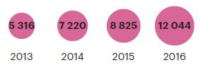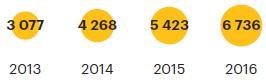Пятый по выручке ретейлер России в 2016-м рос бурными темпами: по данным «INFOLine-Аналитики», число магазинов сети увеличилось почти на 40%, до 240. В 2017-м «Лента» планирует открыть еще 30 гипермаркетов и 50 супермаркетов, вложив 40 млрд руб. Цель — удвоить торговые площади к 2020 году (до 2,3 млн кв. м) и нарастить долю супермаркетов до 15−20%. В рамках новой стратегии компания вместо строительства арендует помещения и распродает земли, оцененные почти в 1 млрд руб., писала газета «Коммерсантъ».
