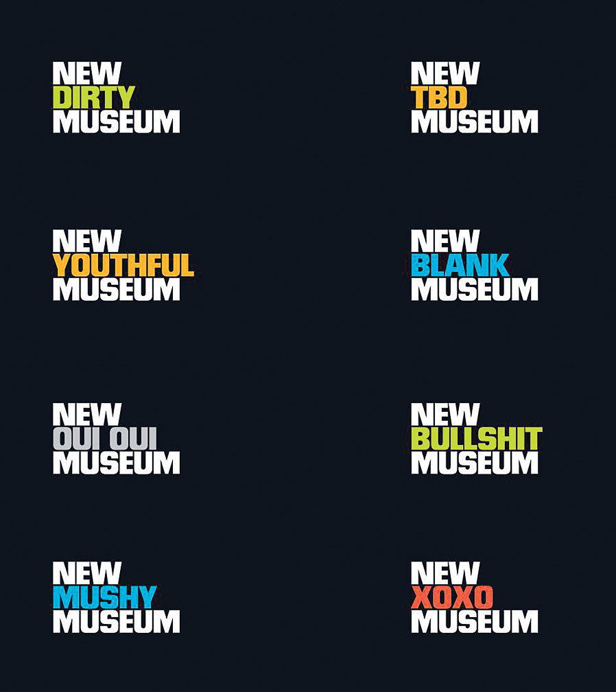 01. Айдентика New Museum в Нью-Йорке решает проблему перенасыщенности культурных институций в городе, сбрасывая с себя лишний официоз, — в логотипе всегда есть пространство для обыденных человеческих прилагательных и сленга, которые создают менее официальный образ.