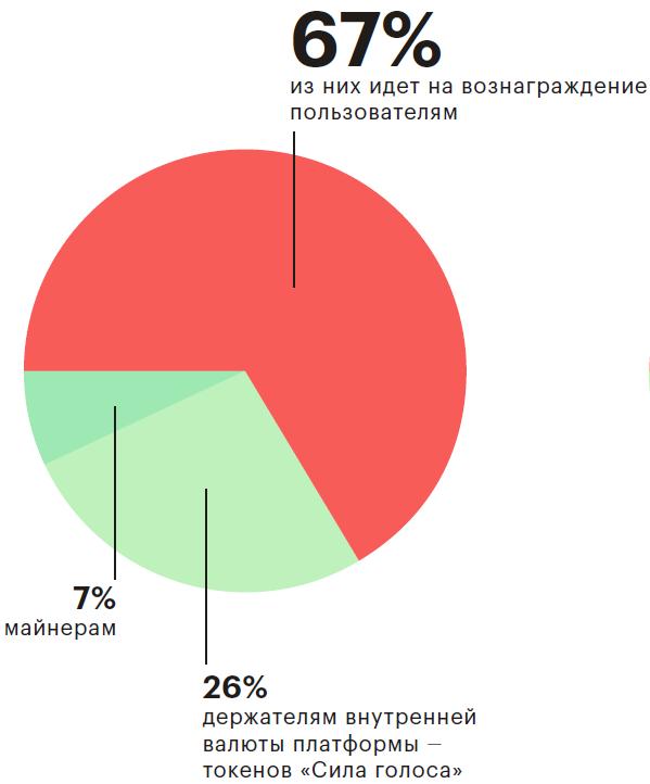 Всего в «Голосе» зарегистрировано 80 тыс. пользователей, из них активны примерно 2,5 тыс. в сутки, которые совершают около 75 тыс. транзакций — постов, комментариев и «апвоутов». За один день на платформе между пользователями распределяется порядка 1 млн руб., если смотреть по текущему курсу токена, утверждает Симановский.