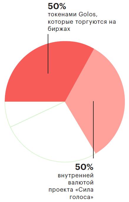 В «Голосе», как и в Steem, авторы получают вознаграждение, если другие участники сети ставят под их постами «апвоуты» — местные лайки. При этом вознаграждение делится между автором и тем, кто поставил «апвоут», (их здесь называют кураторами). Половина вознаграждения начисляется в токенах «Голос» — официальной валюте платформы, которая торгуется на криптовалютных биржах, половина — во внутренней валюте «Сила голоса», которая определяет социальный «вес» человека и которую продать или обменять за пределами проекта нельзя. Пользователи с большой «силой голоса» называются «китами», именно их оценки постам приносят авторам больше всего токенов.