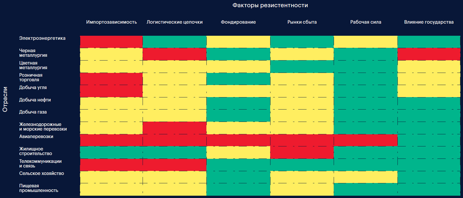 В качестве критериев устойчивости/резистентности базовых отраслей российской экономики к новым потрясениям НКР выделило следующие факторы: